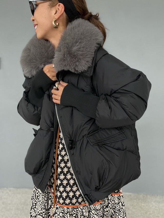 (Black) B.MARIA Eco-Fur Collar Pear Silhouette Jacket【12月下旬発送予定】