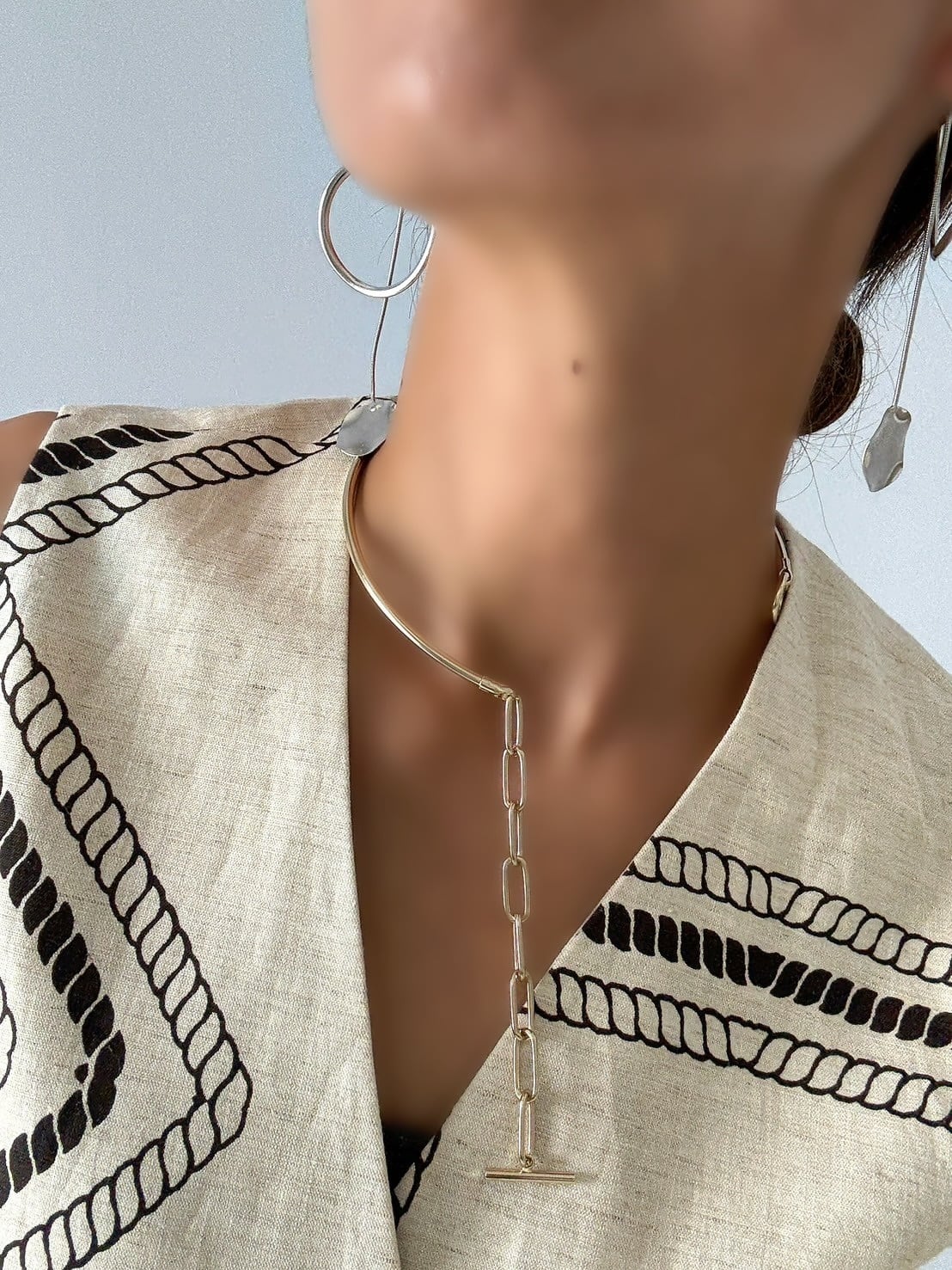 シンプルなチョーカーとしてお使いいただいても、チェーン部分をメインにしても、2WAYでお使いいただけるので、コーディネートに合わせて様々な表情をお楽しみいただけます。