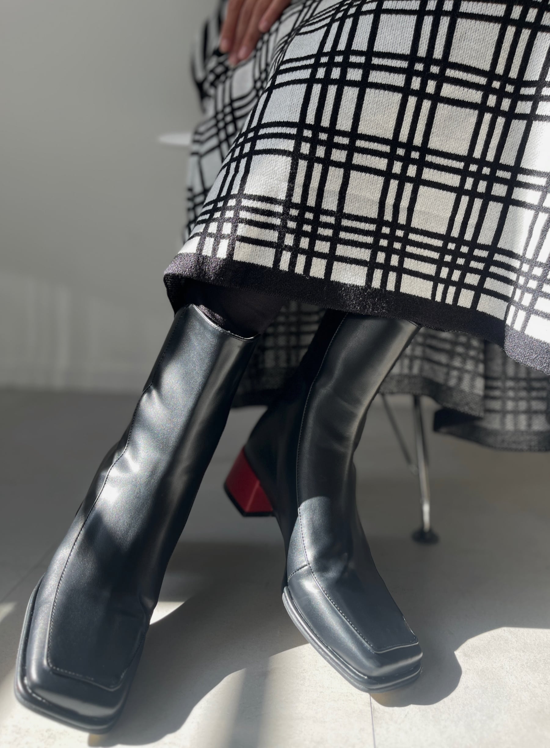 ヒールがレッドポイントが一際目に入るブラックトーンの大人でMODOなブーツ。配色ヒールはMARIAらしいカッコいい女性を象徴するバランスに仕上がっております。