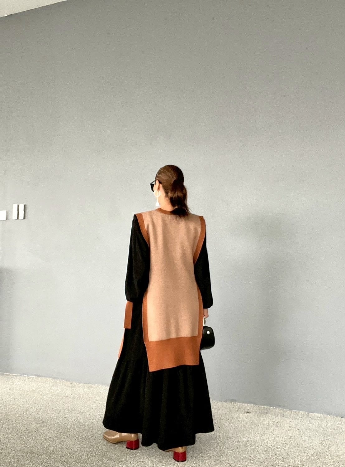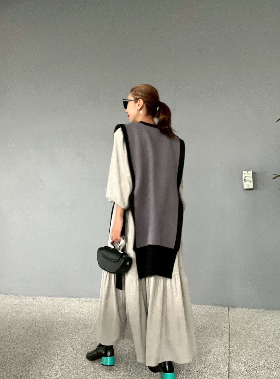 【2SET】シンボルマークニットジレ×コーデュロイティアードロングドレス