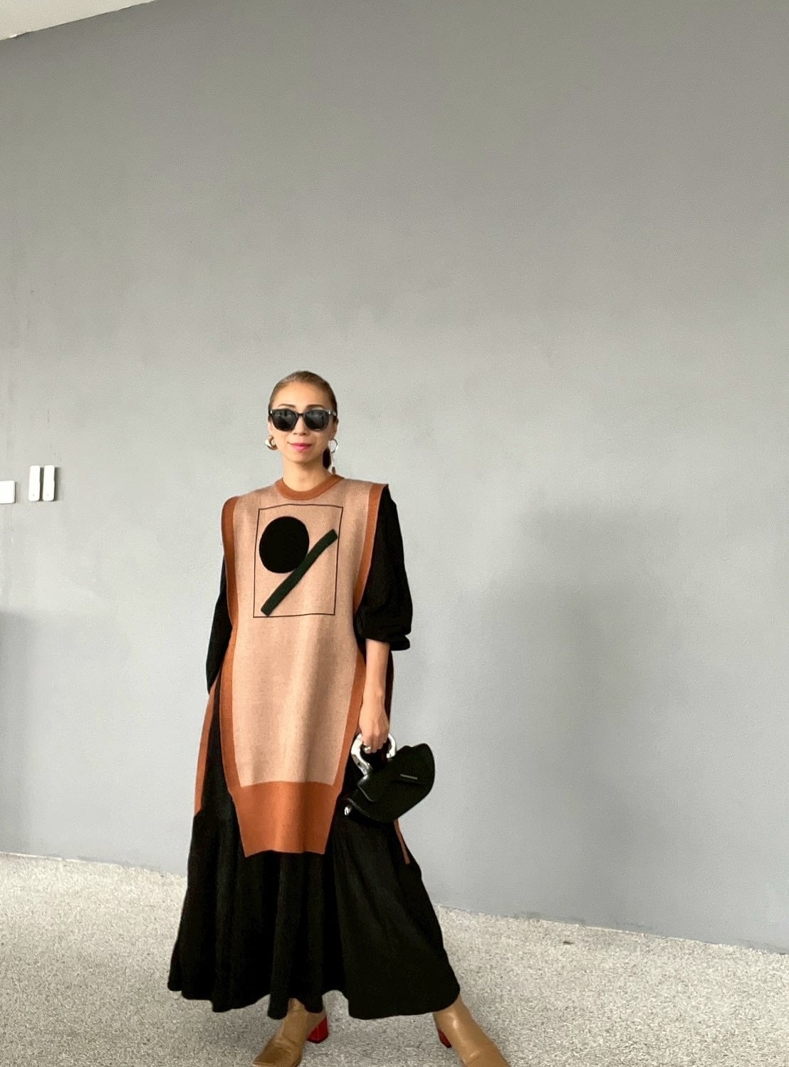 ワンピース・スカート・パンツどれにも合わせやすく、羽織るだけで日常のスタイルをアートに格上げします。