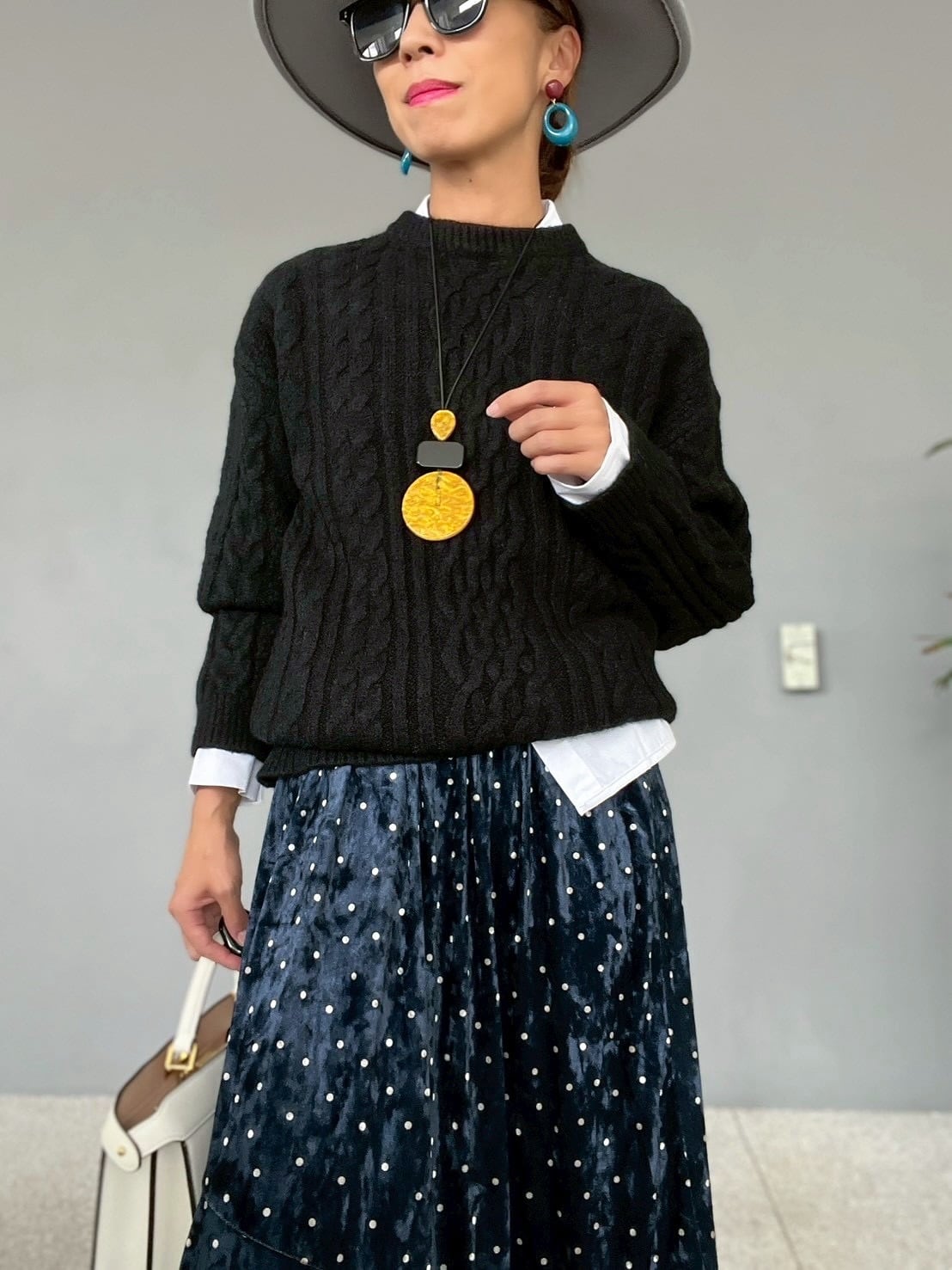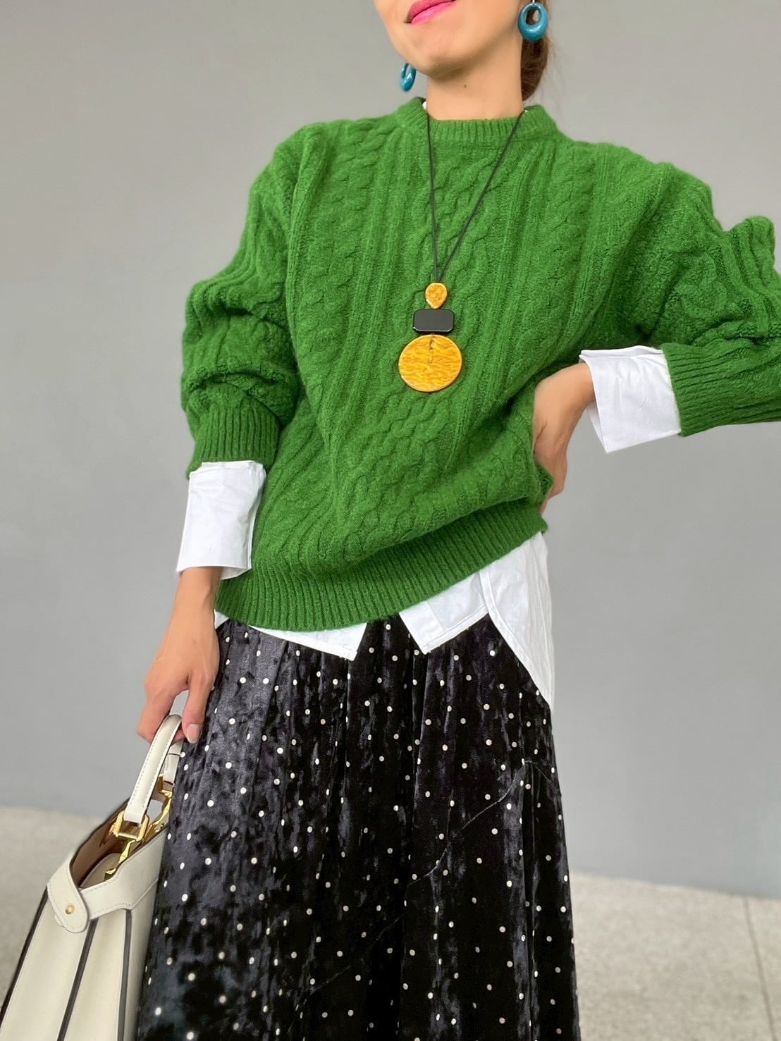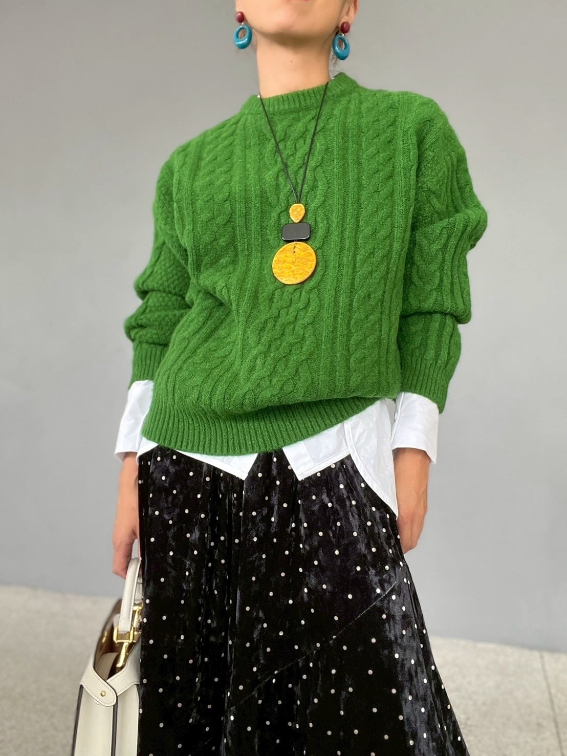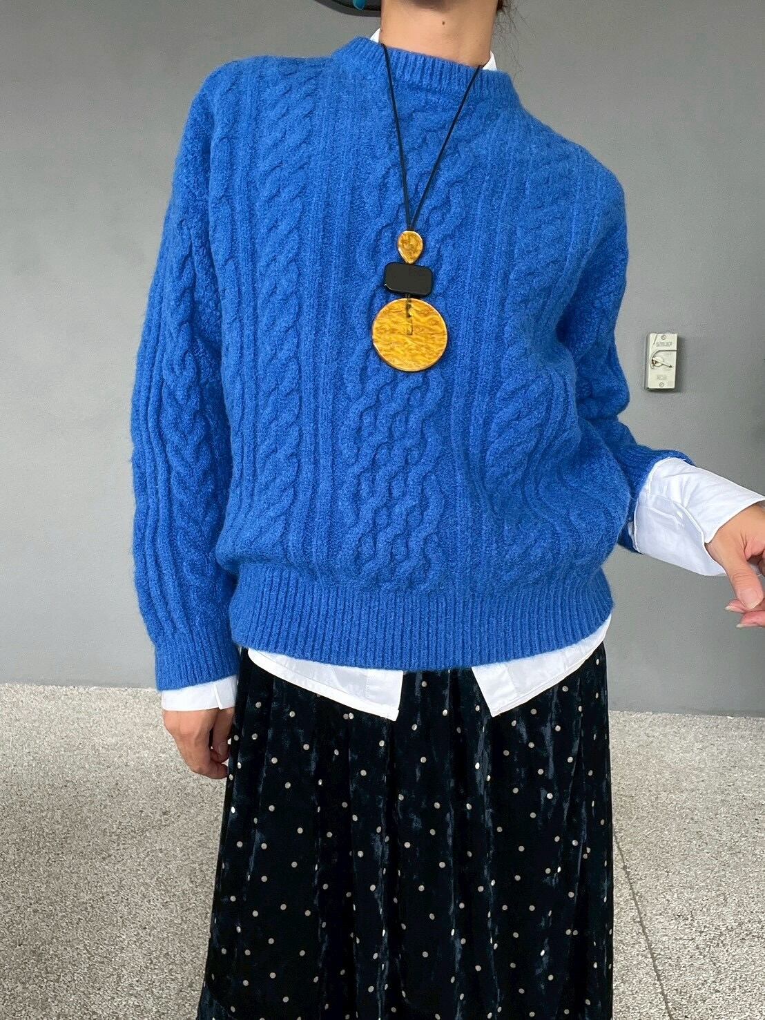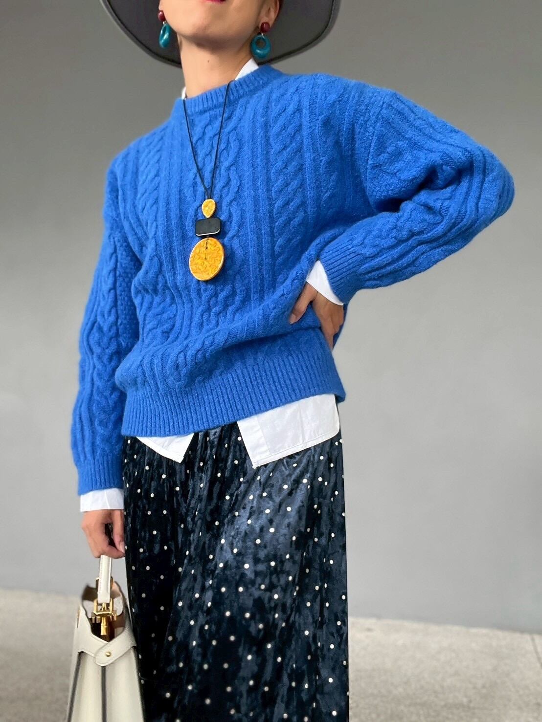 表情豊かなケーブル編みが目を惹く、これからの季節に欠かせないプルオーバーニット。
