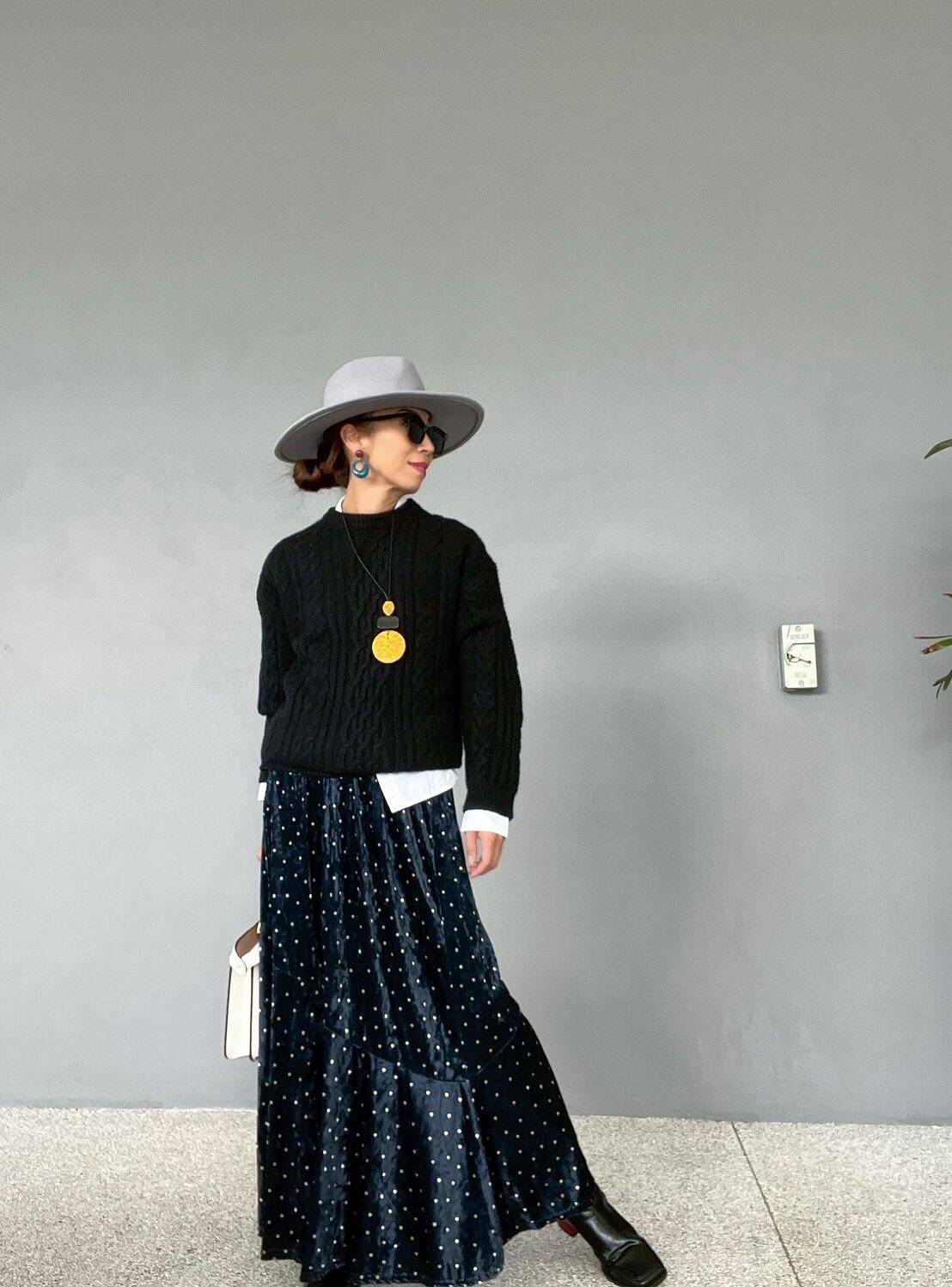 きれいめなスカートからカジュアルなデニムまで、幅広いスタイリングを楽しめる一着です。