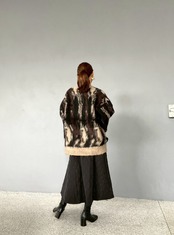 AWオリジナルのこだわりニットは大胆なアソート柄がモードな気分を格上げしてくれ、オーバーサイズでお尻が隠れる丈となっております。