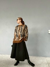 シーズンライクな中綿のキルティング素材であたたかさと、立体的なフレアシルエットでモードなデザイン性も兼ね備えた映える大人のキルティングスカートです。