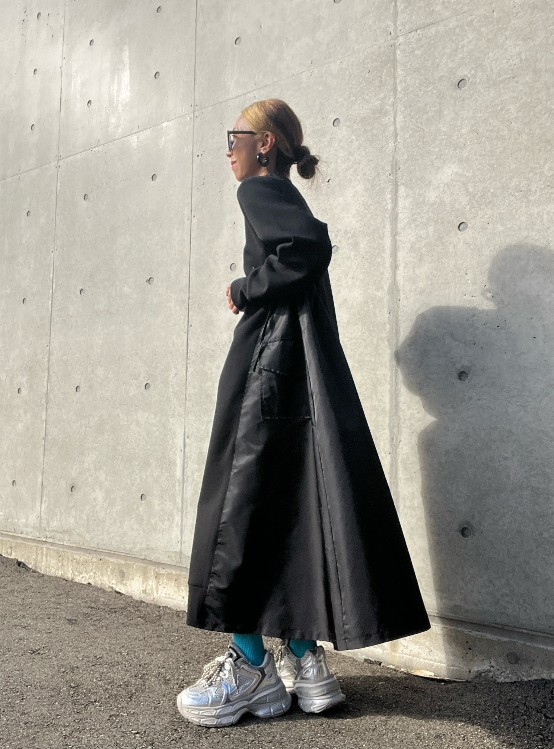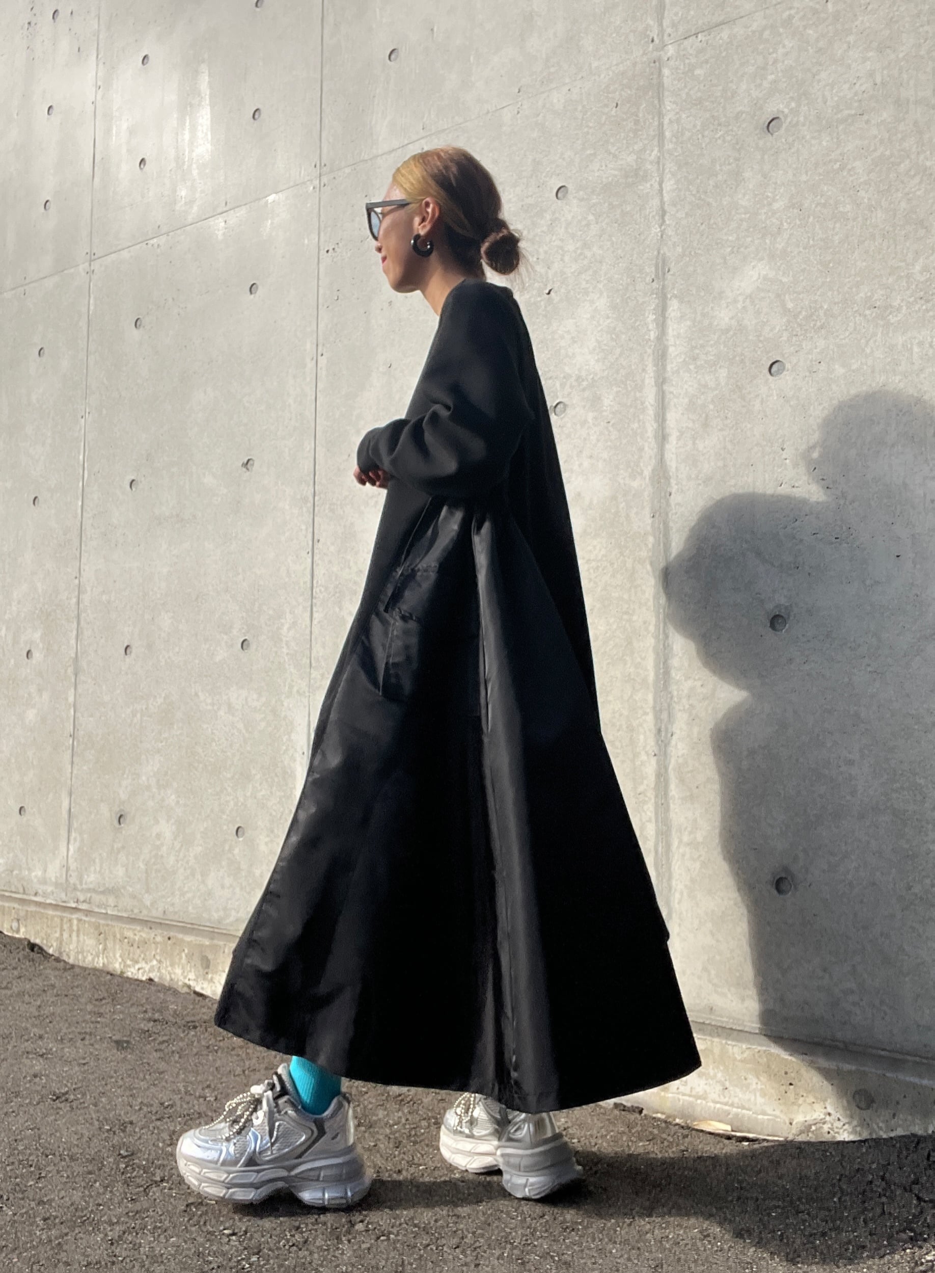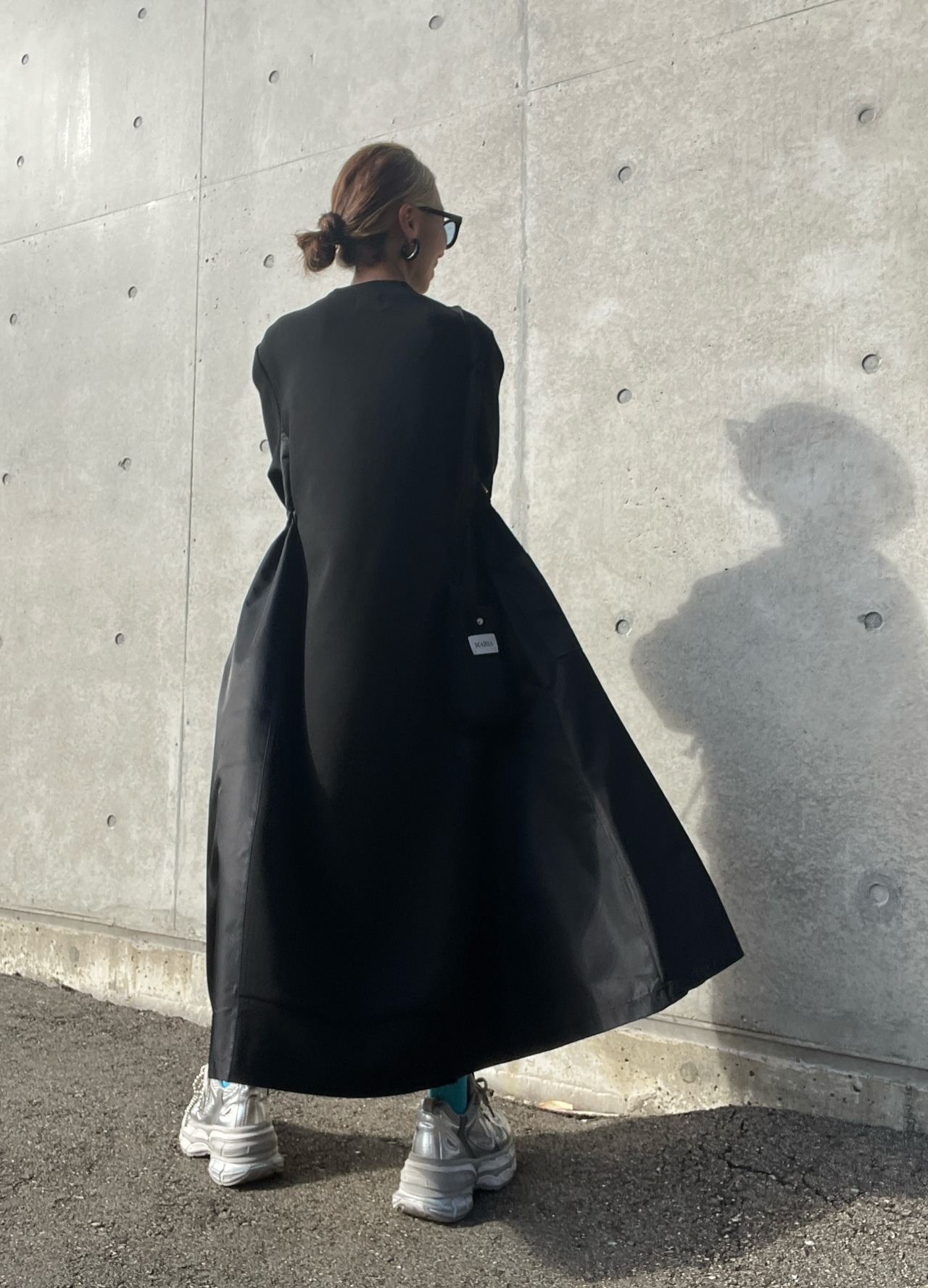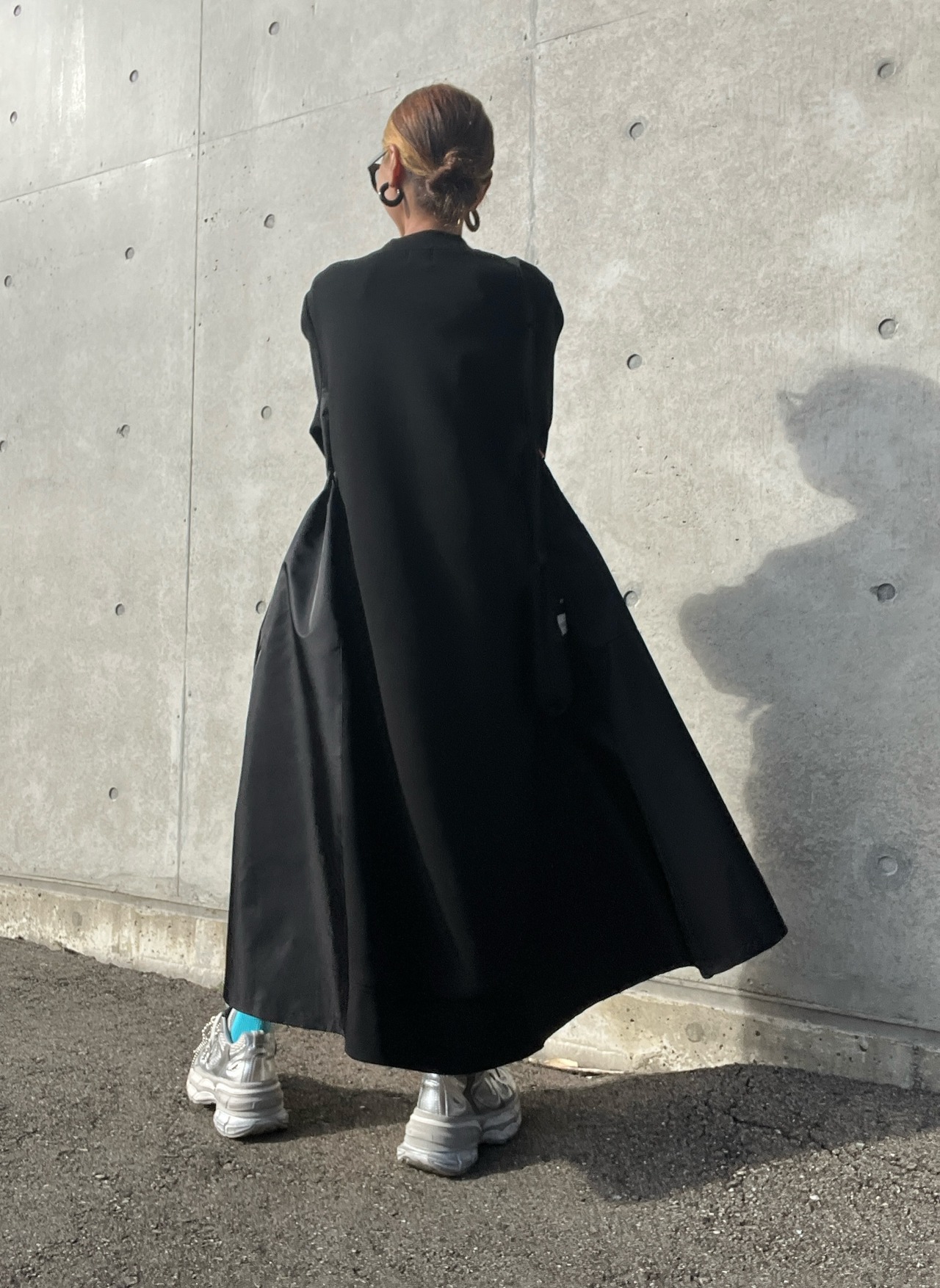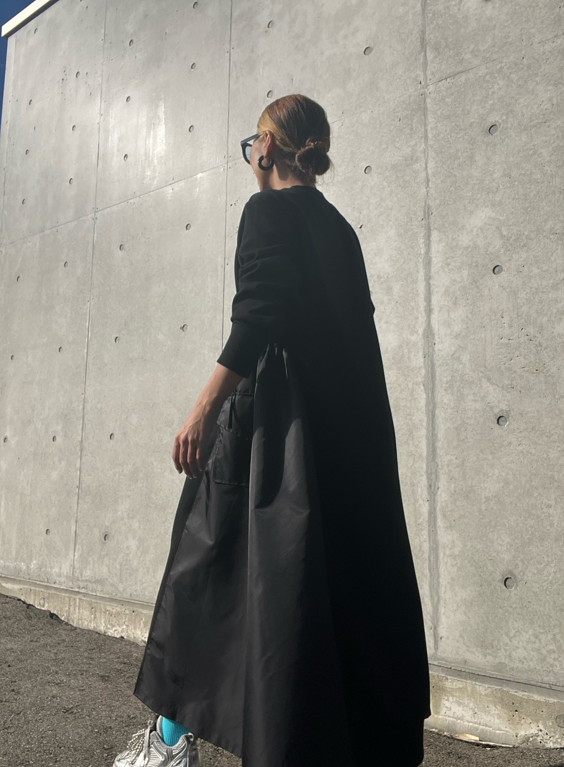 大変人気のタフタワンピース。着丈が長くなり、スニーカーなどでも合わせやすい着丈にバージョンアップしての登場。