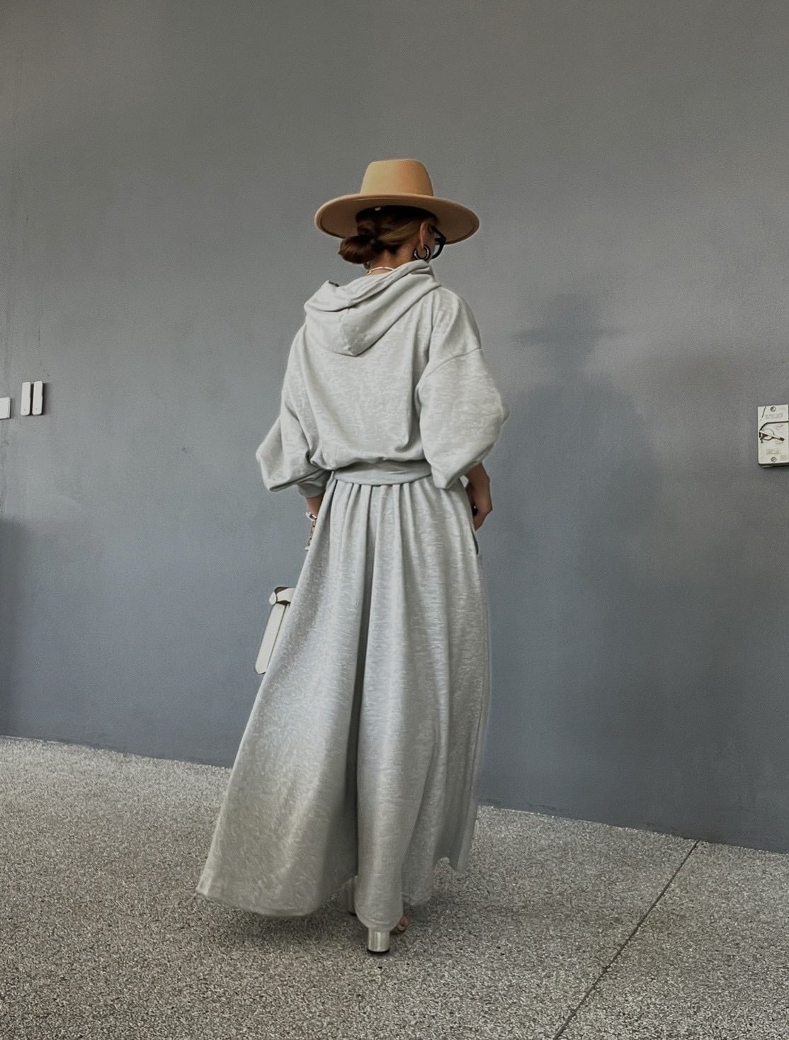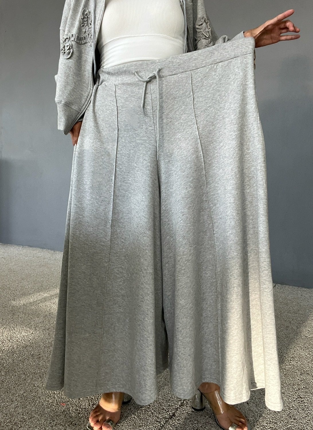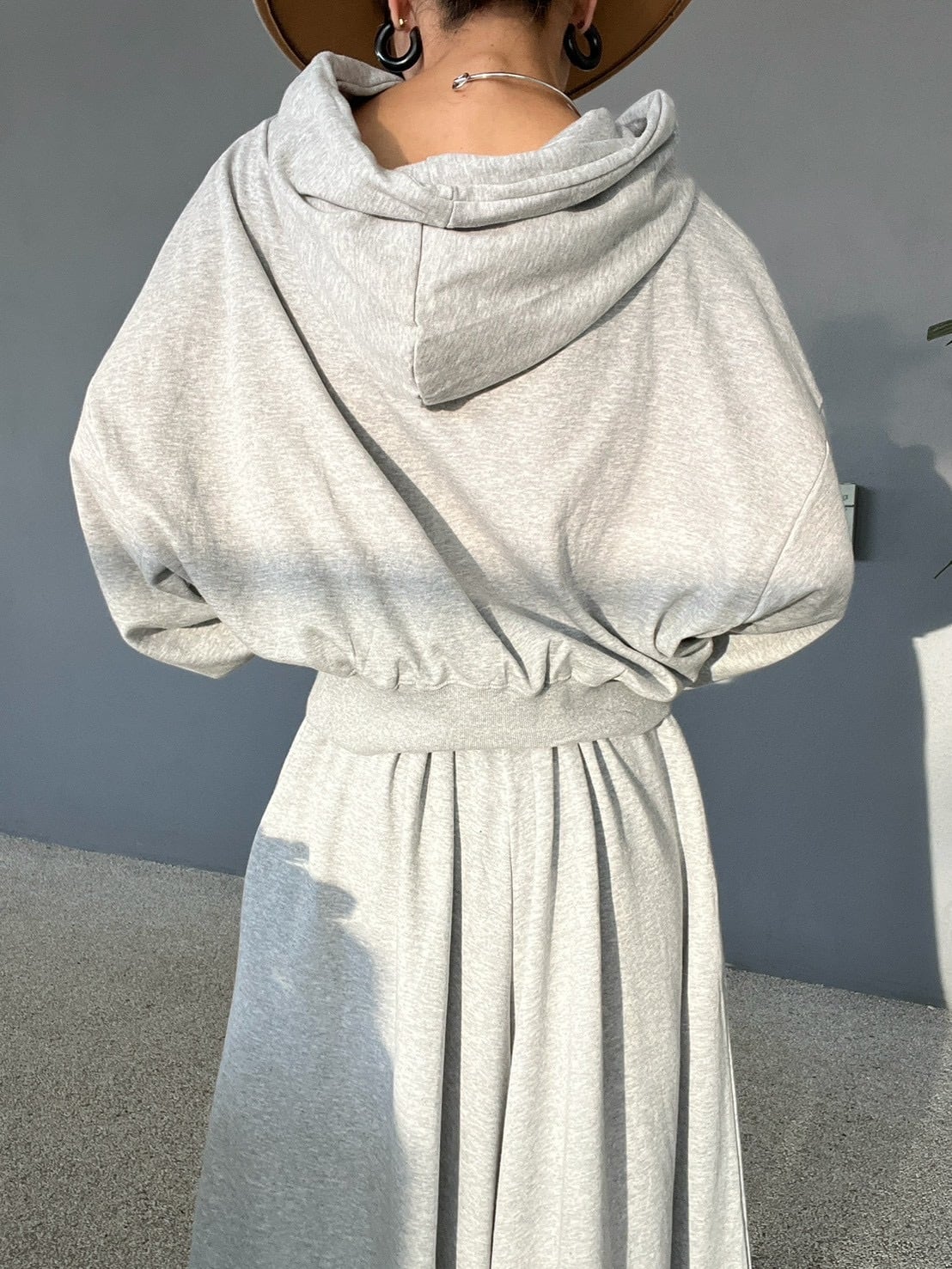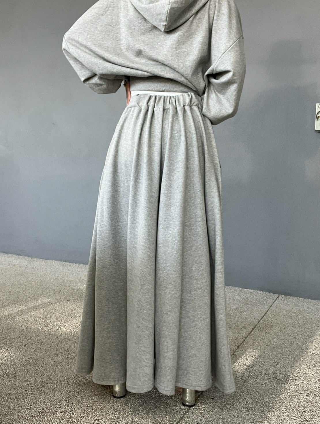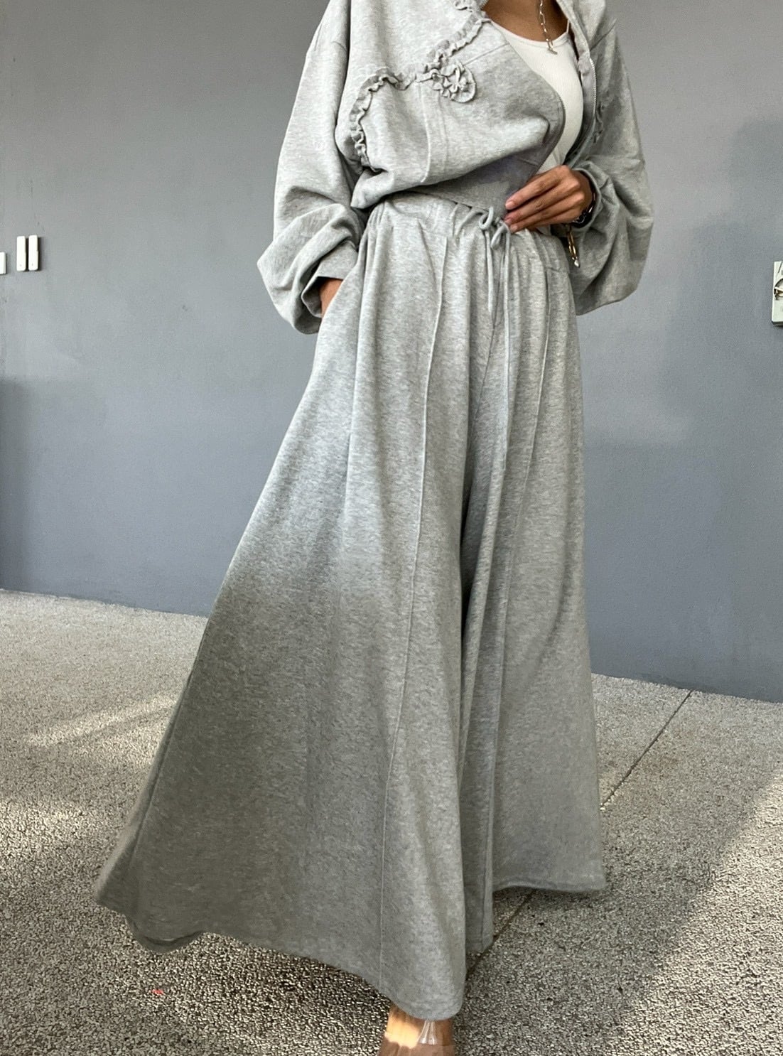ロングスカートのようにも見える、圧倒的なボリューム感が魅力のワイドパンツ。贅沢に生地を使用し、歩くたびに美しく揺れるボリューム。スウェットの概念を覆すエレガントな佇まいです。