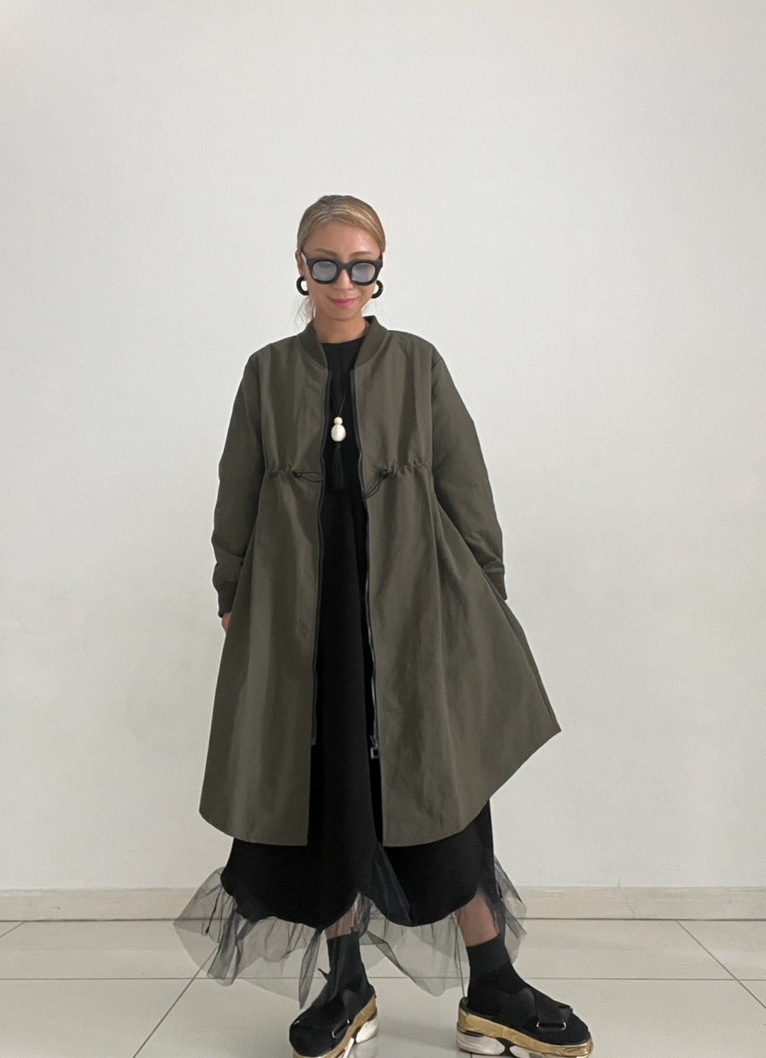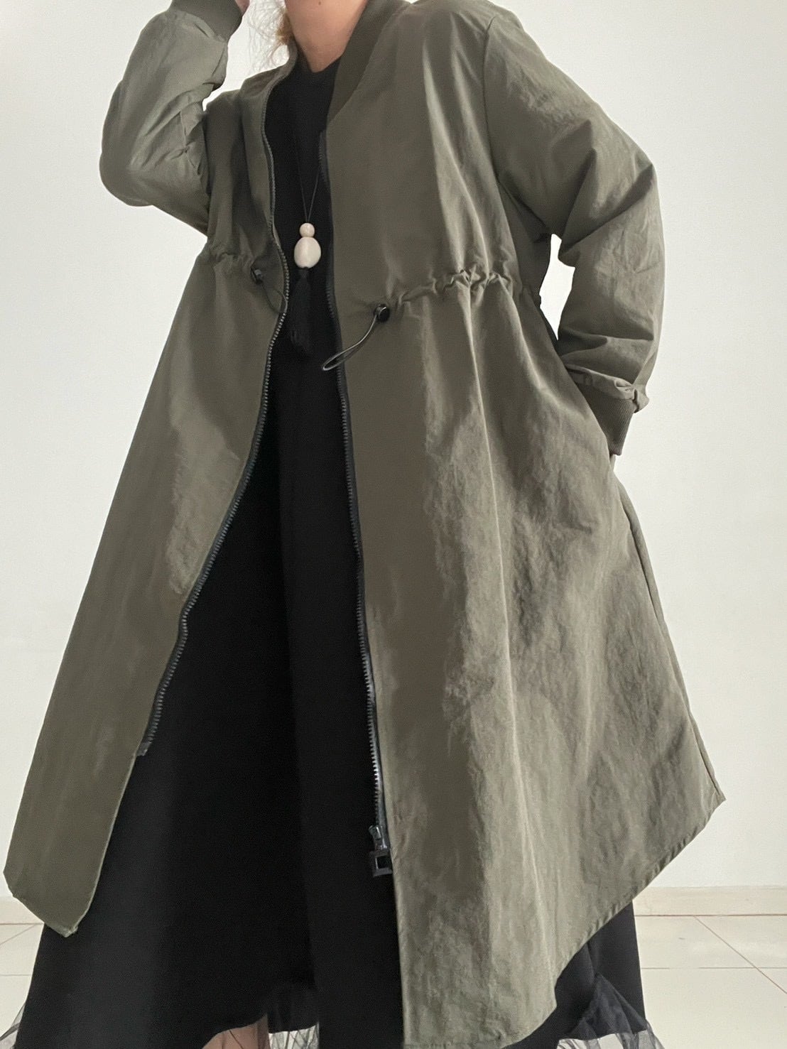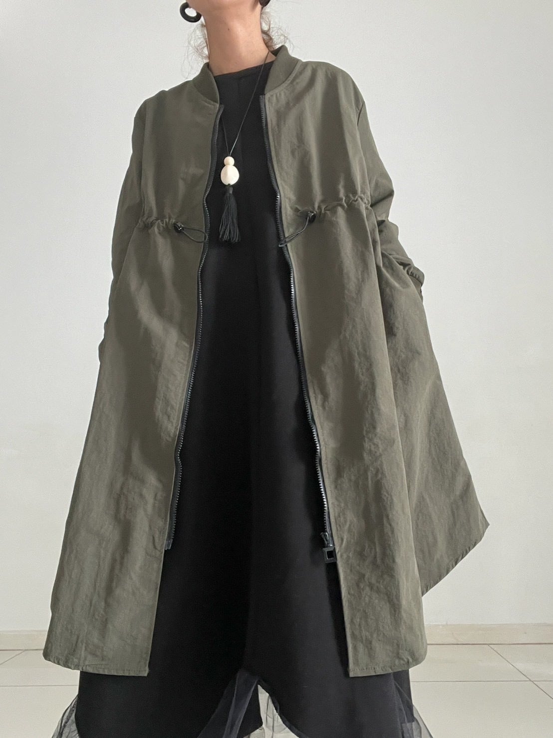 ミリタリーの定番MA-1を、女性らしいロングシルエットで楽しめる一着。