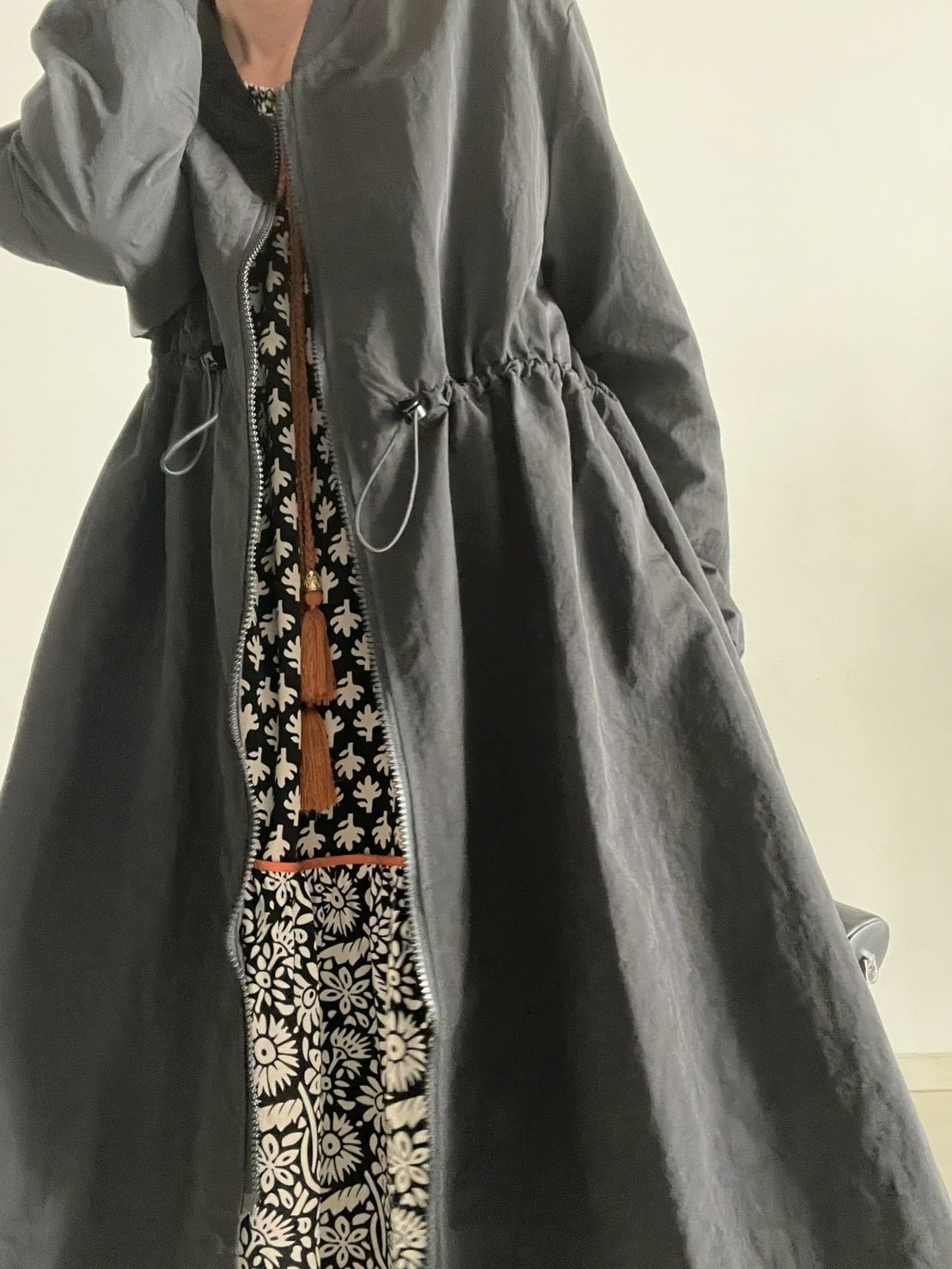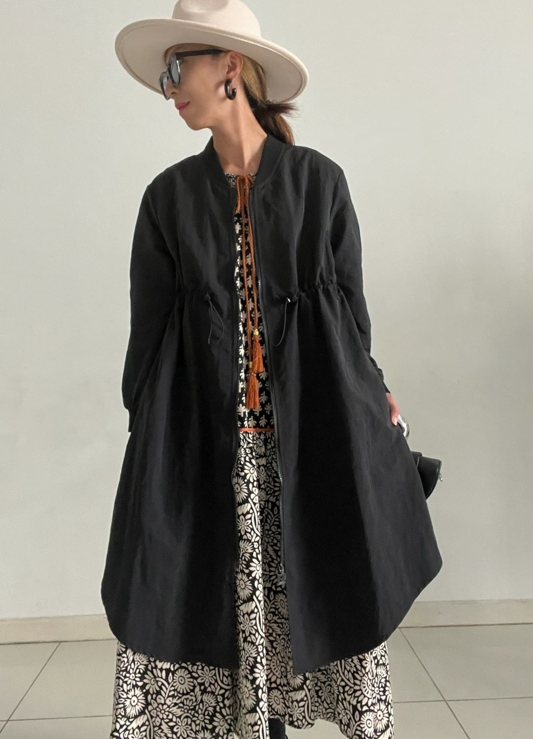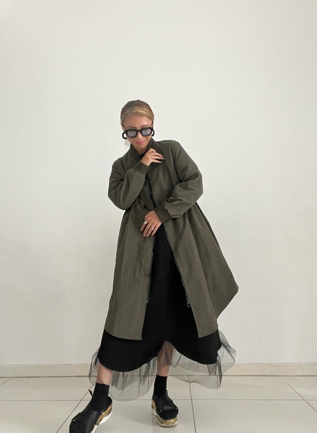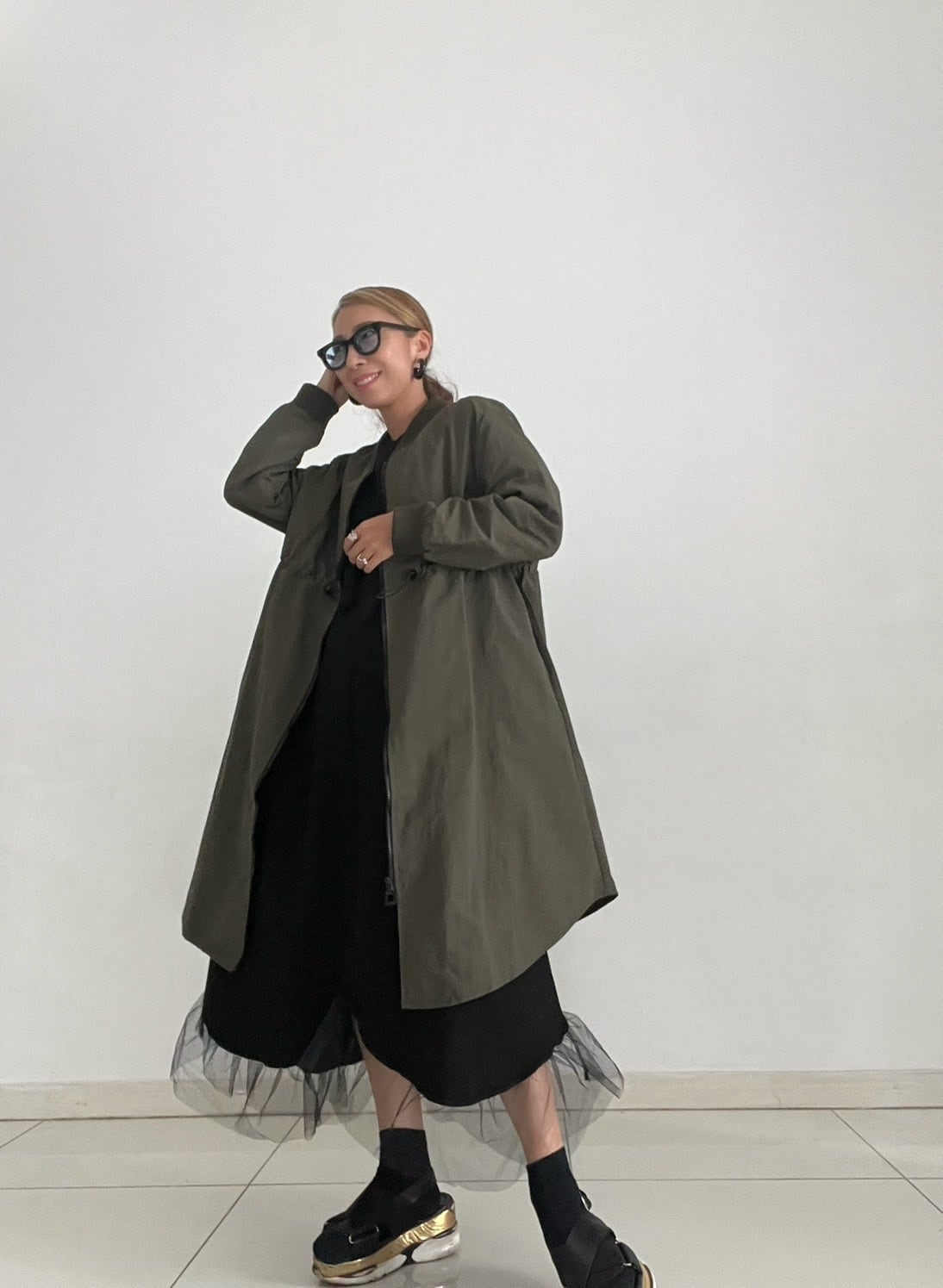 ミリタリーの定番MA-1を、女性らしいロングシルエットで楽しめる一着。
