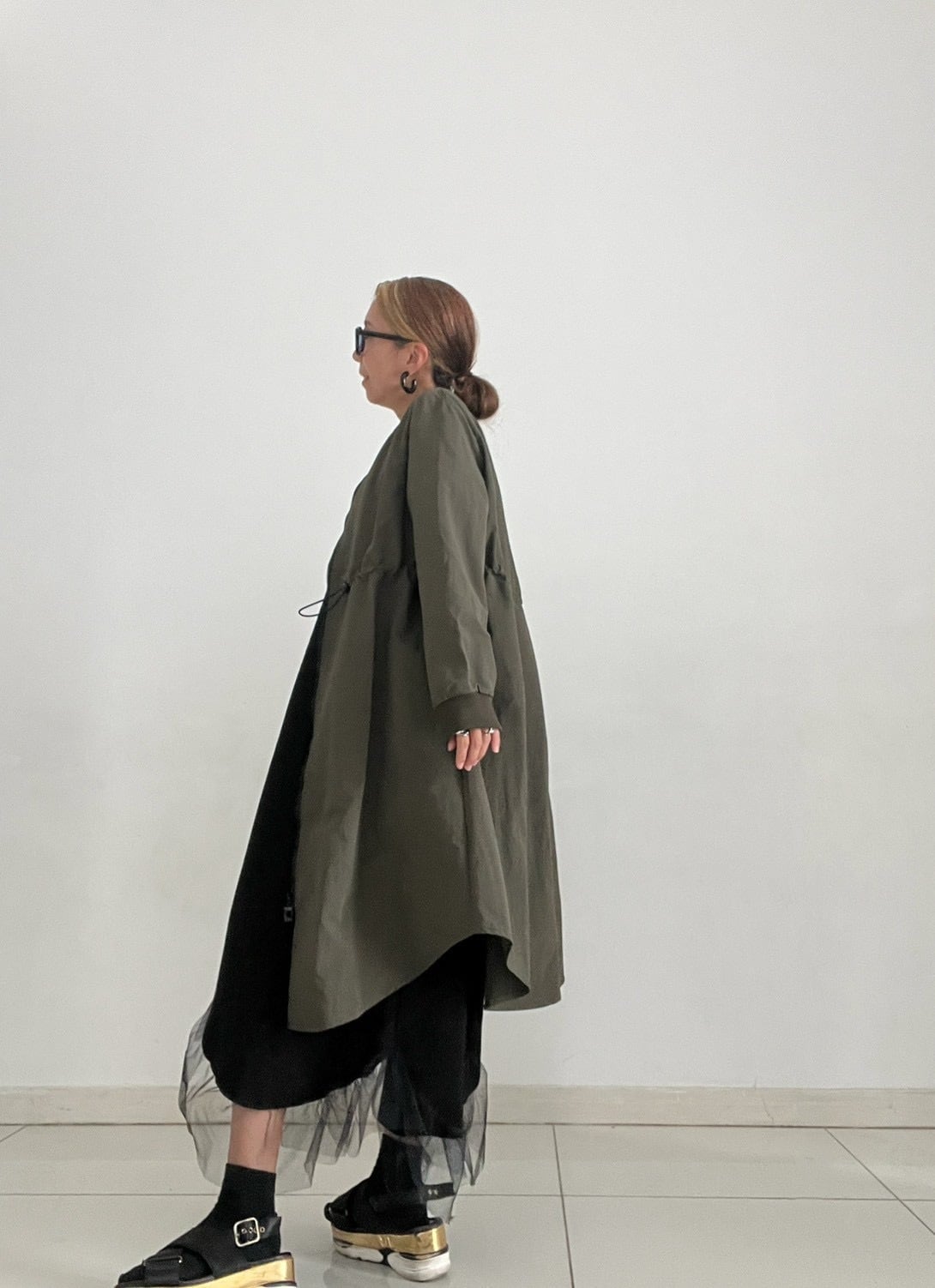 「長すぎない」絶妙なレングスで、パンツはもちろん、ロングスカートやワンピースとも好バランス。