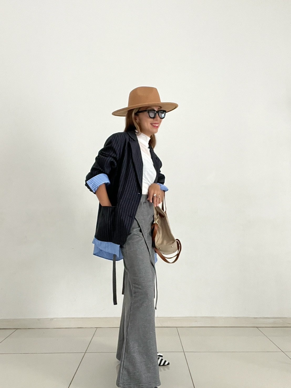 袖丈(テーラー袖55cm)+8cm(ストライプシャツカフス丈)