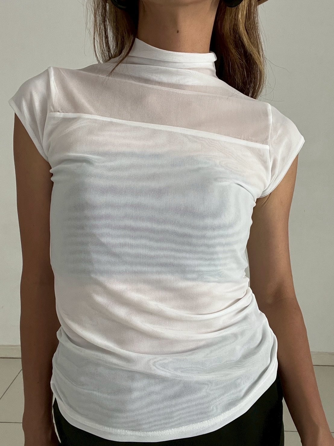 驚くほどなめらかに伸びる、スポーティーな軽やかな着心地と、今季らしいシアー感を掛け合わせた一枚です。