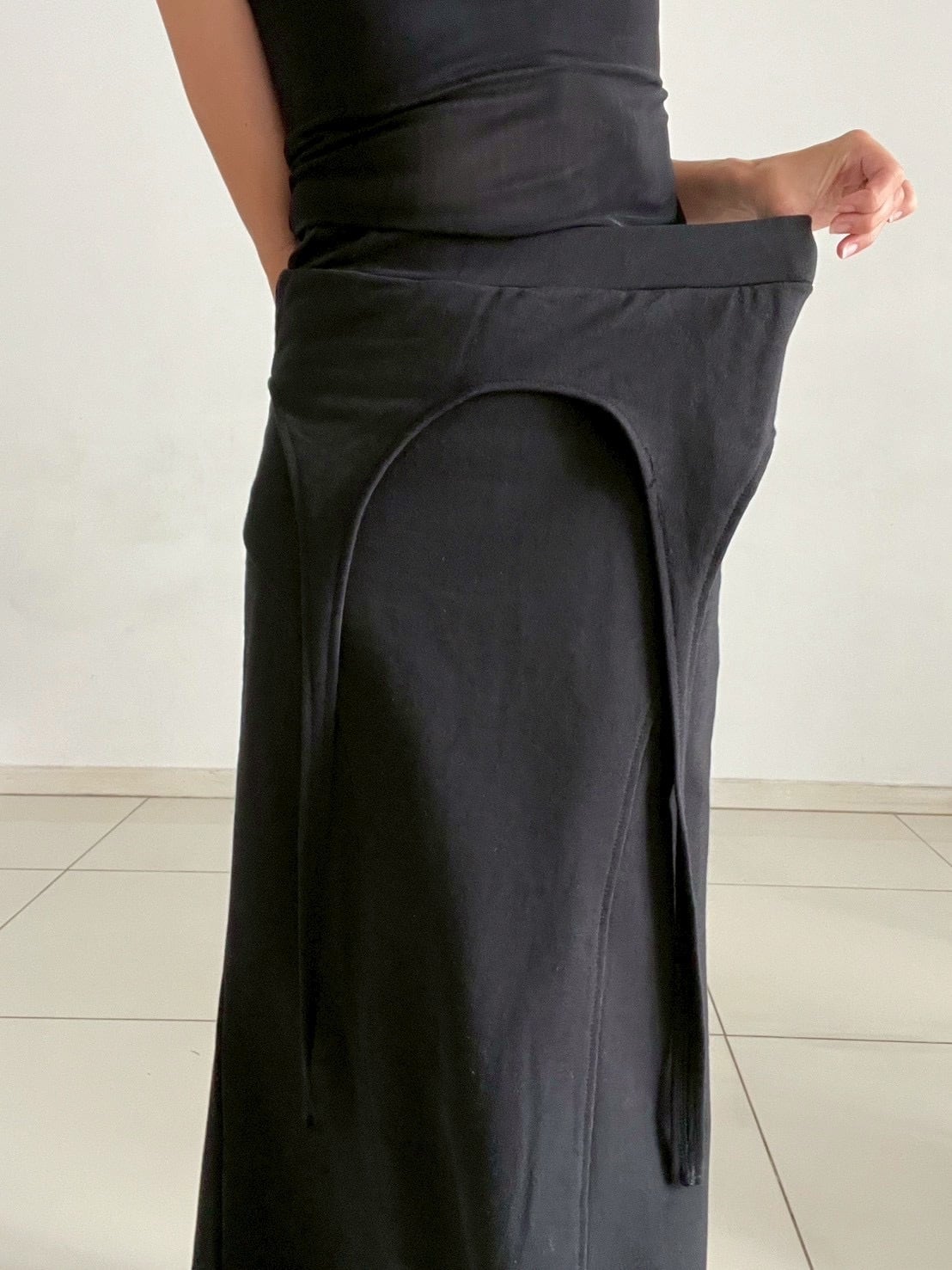ウエストに施されたレイヤード風ストラップデザインが縦のラインを強調し、自然と脚を長く見せてくれます。