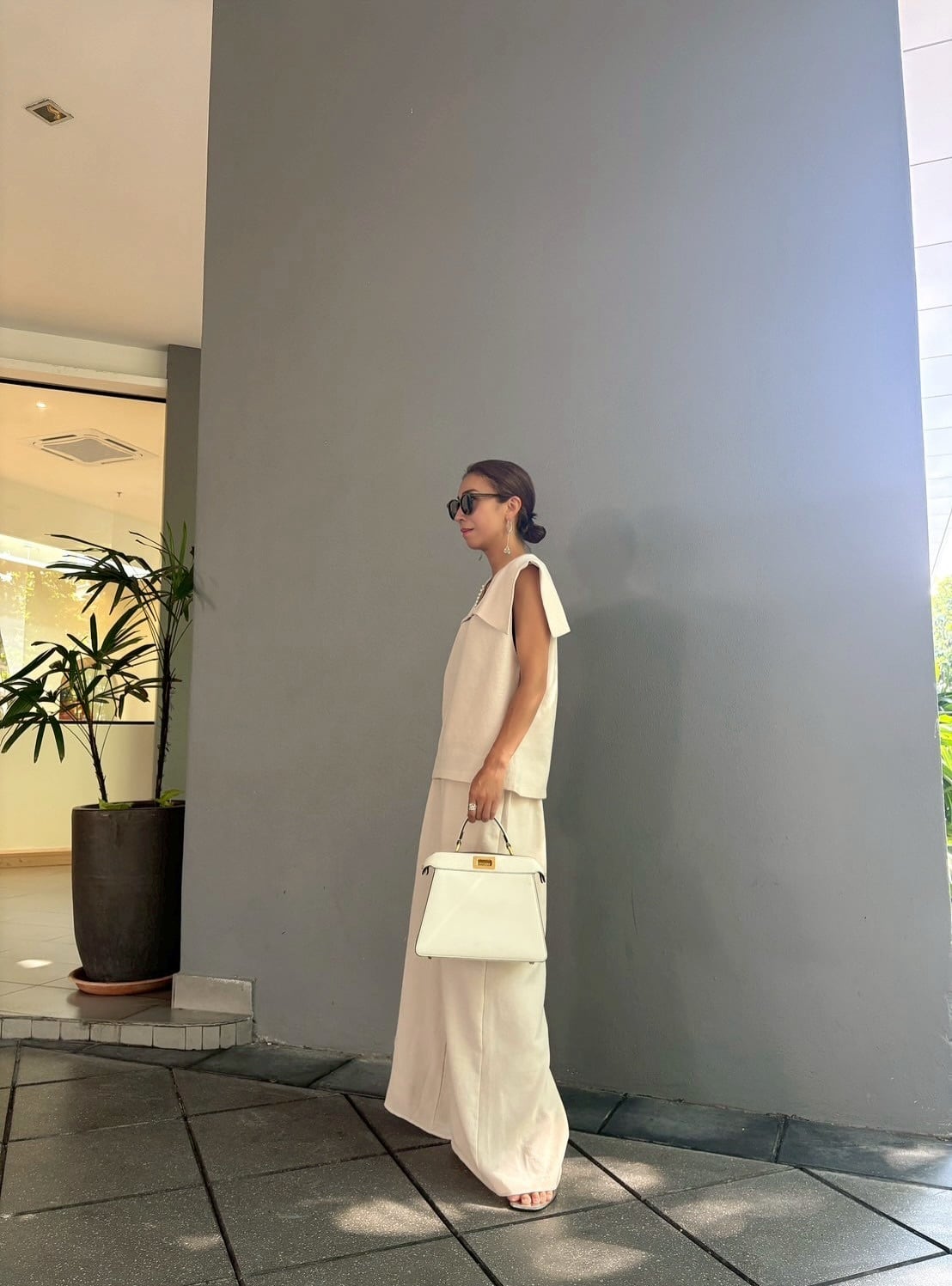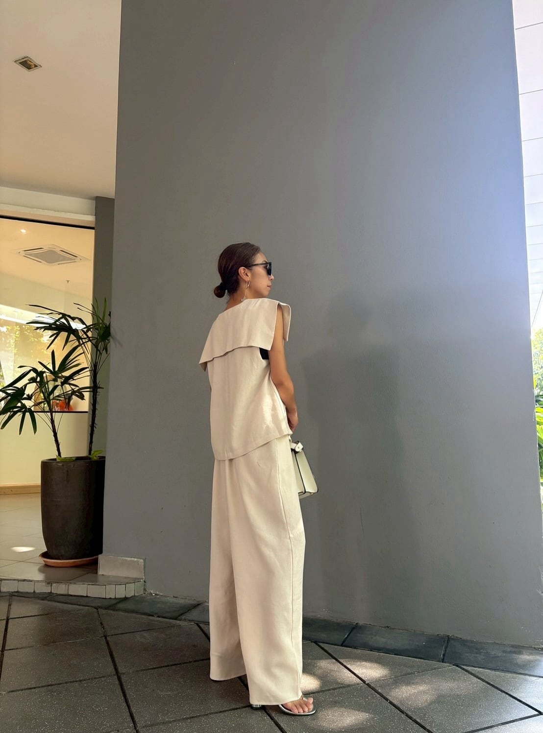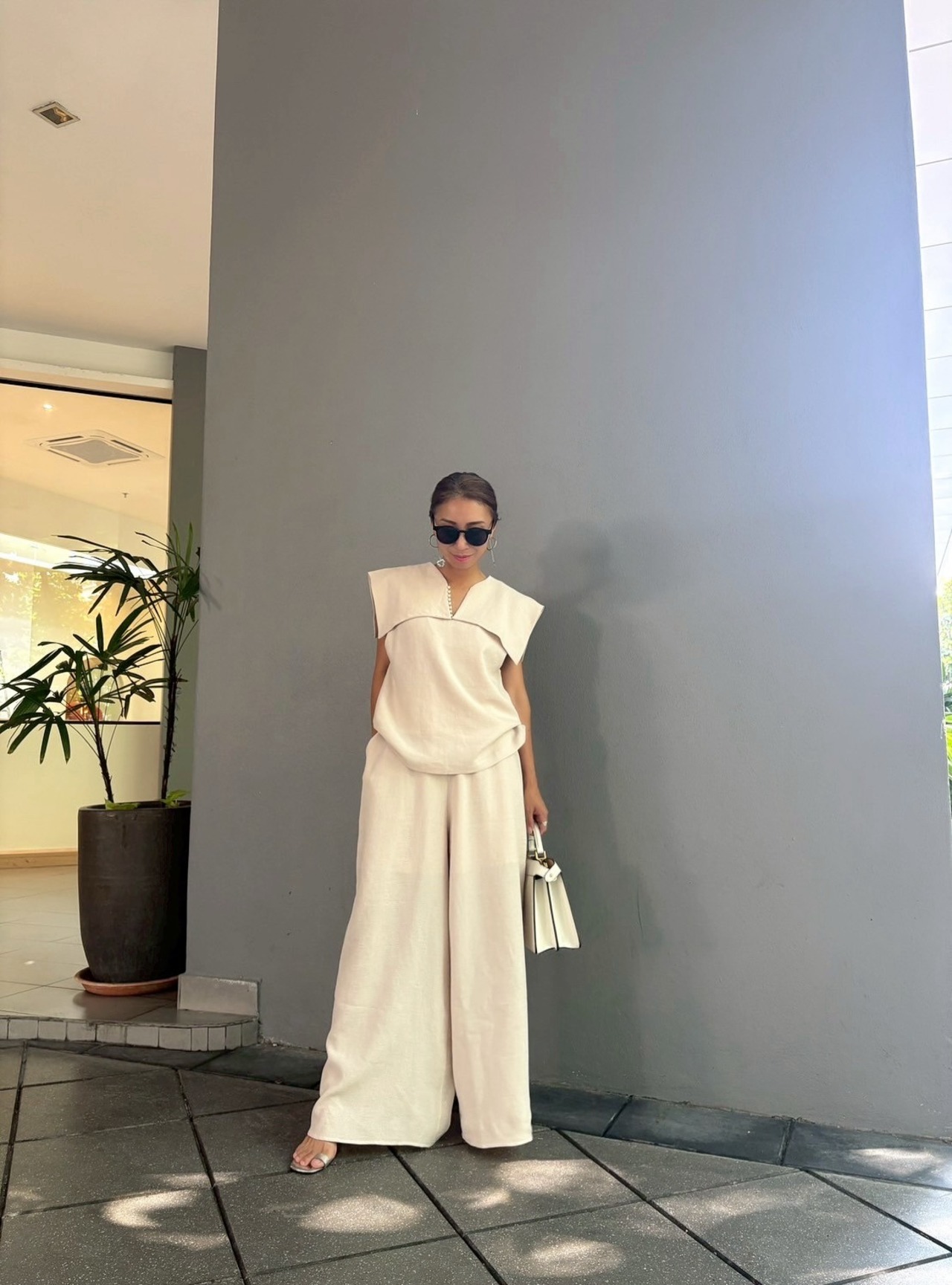 全身をワントーンでまとめることで、セットアップならではの統一感と上品な印象を最大限に引き出せます。足元はサンダルやフラットシューズで軽やかに、ヒールを合わせればよりエレガントな装いに。大人の女性にふさわしい、上品でモードなセットアップで、新しい季節のスタイリングをお楽しみください。