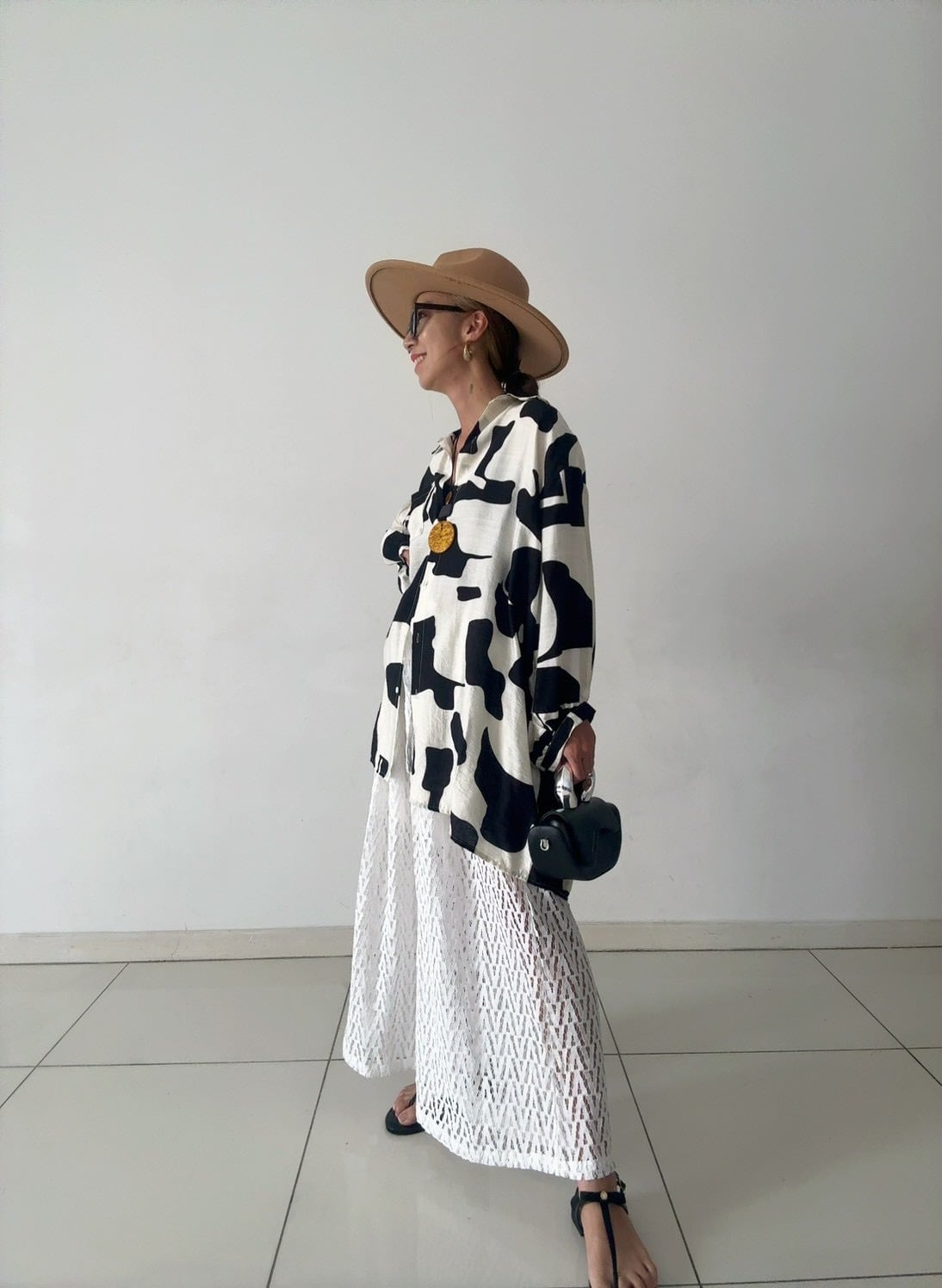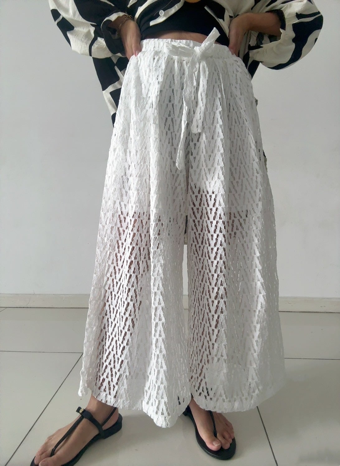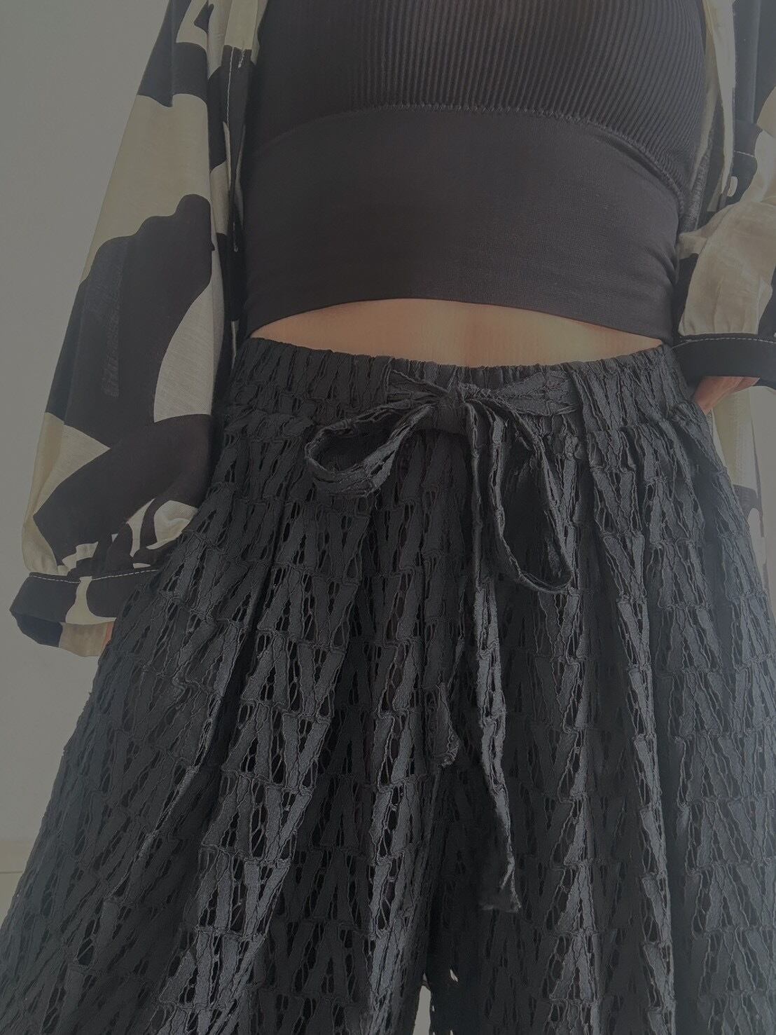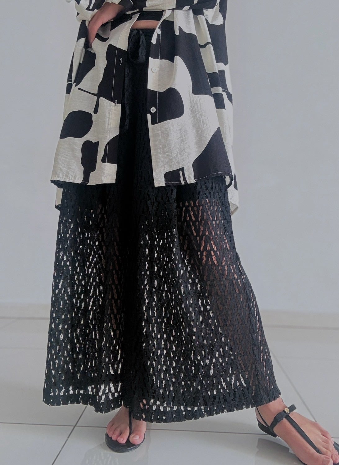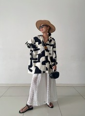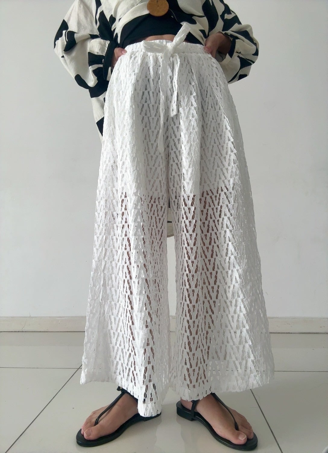 ジオメトリックレースワイドパンツ