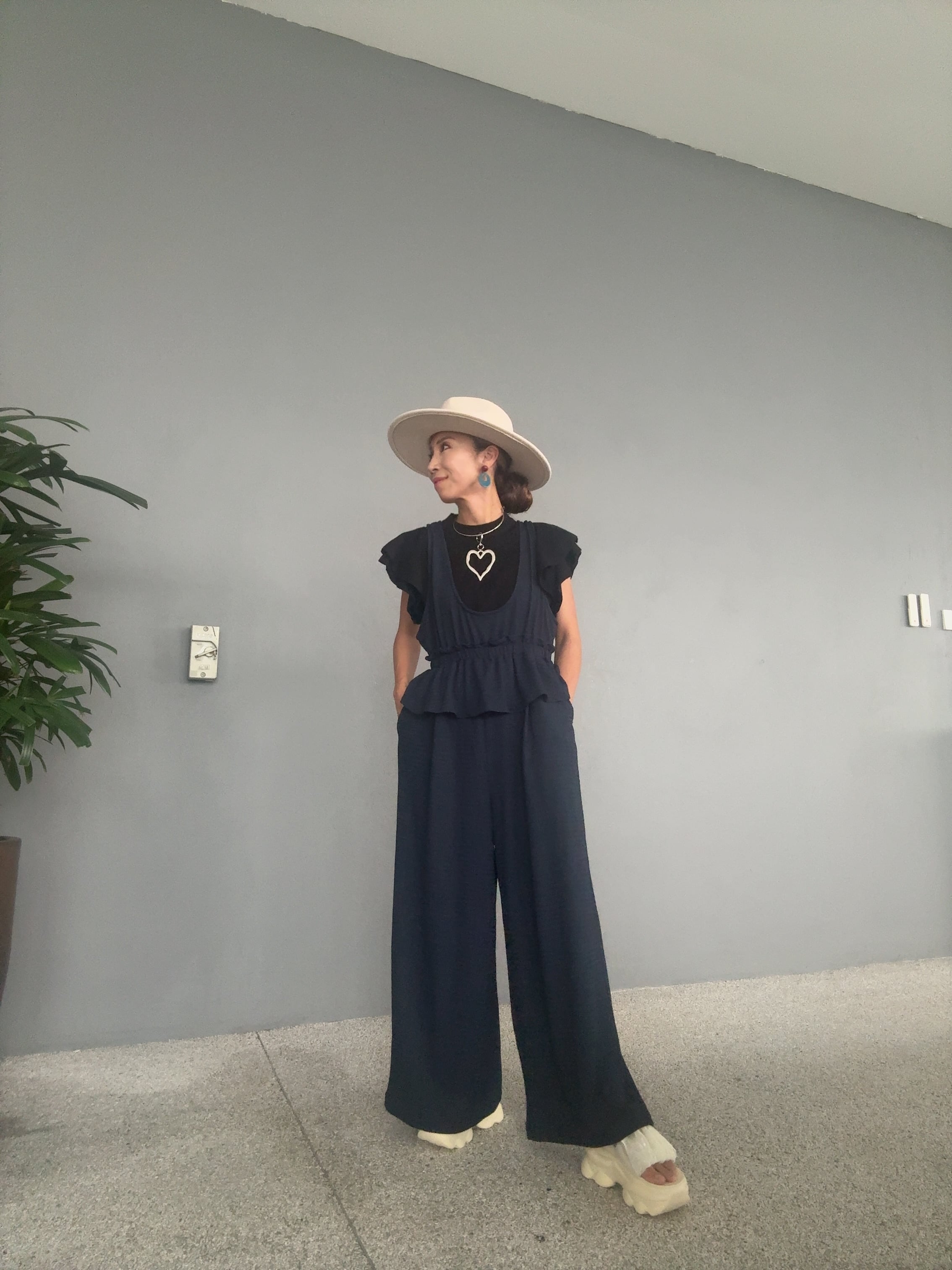 ふわふわと柔らかな着心地が魅力のペプラムロンパース。