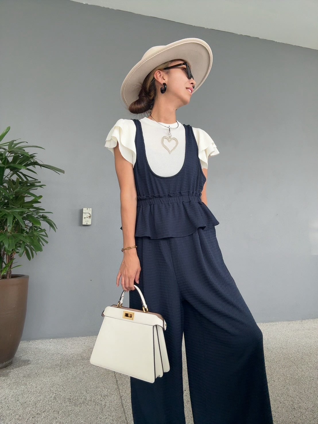 ワイドストレートのシルエットが、リラックス感の中に都会的なムードを演出する一着です。