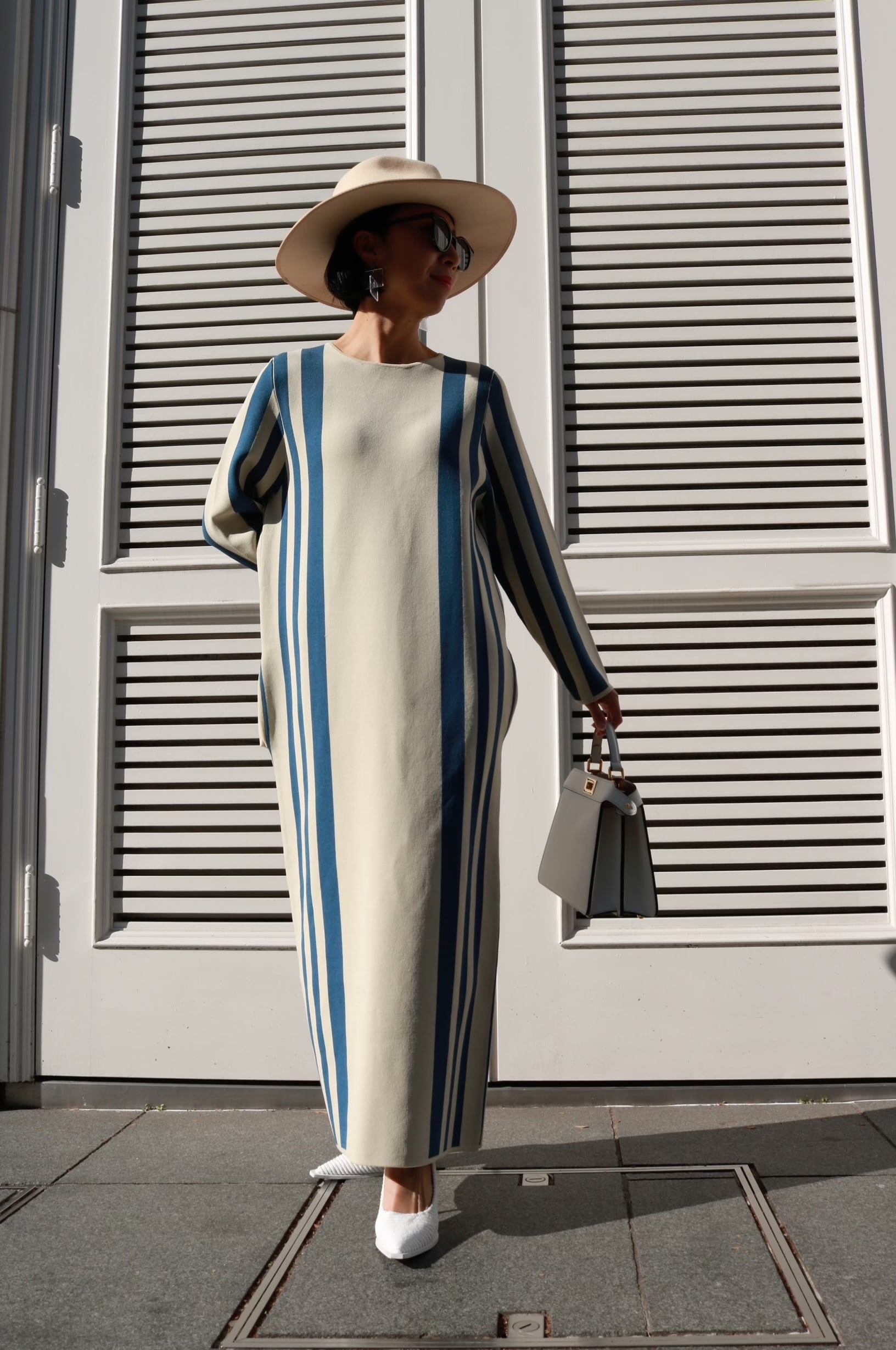 ストライプのパイピングが縦長ラインを強調させ、スッキリとした印象に。