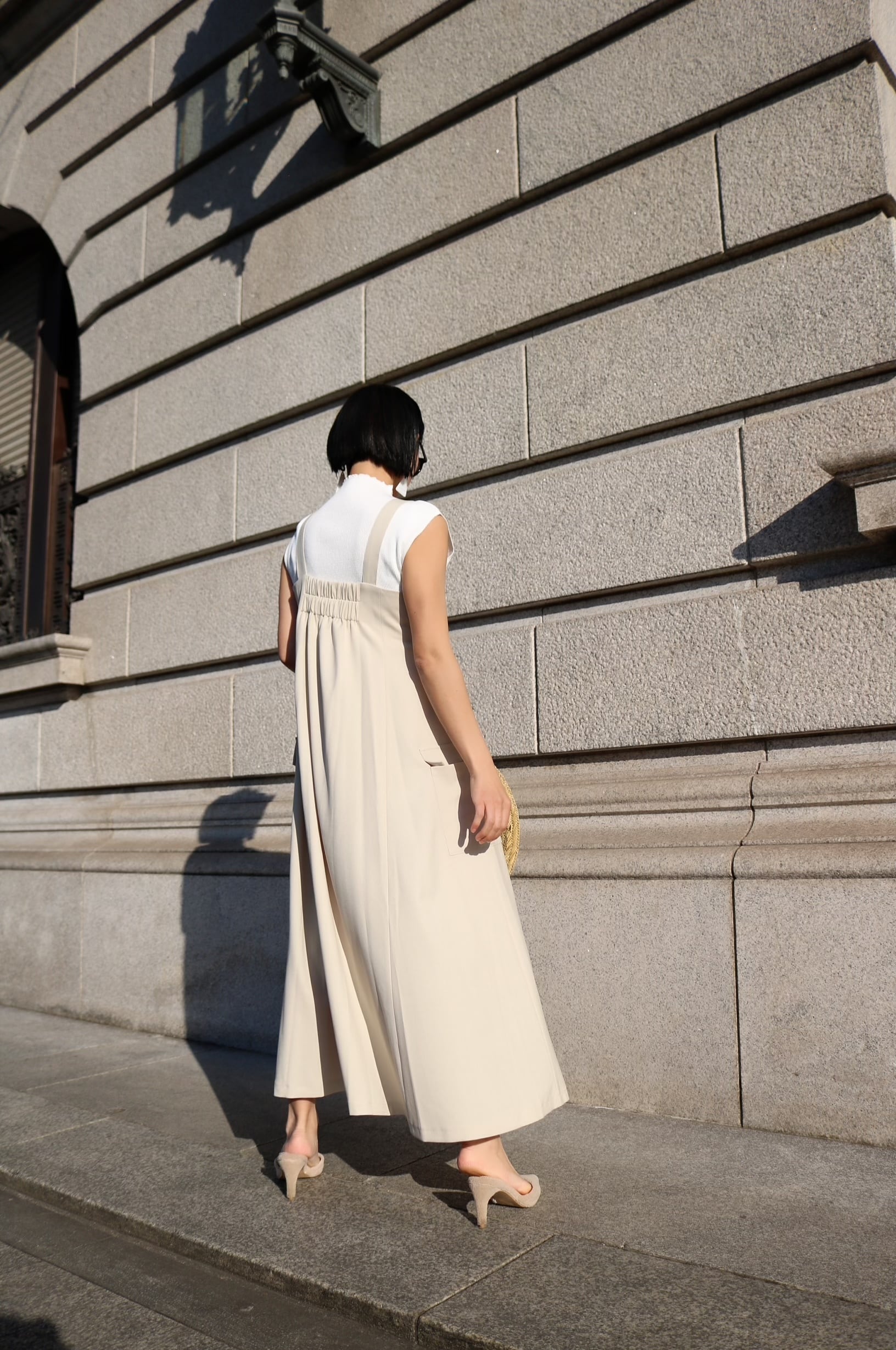バストトップに合わせてお召しいただくと大人で着やすく細見えするシルエットになります。肩紐で長さ調整が可能なのでお好みの長さで合わせてご着用いただいても素敵です。