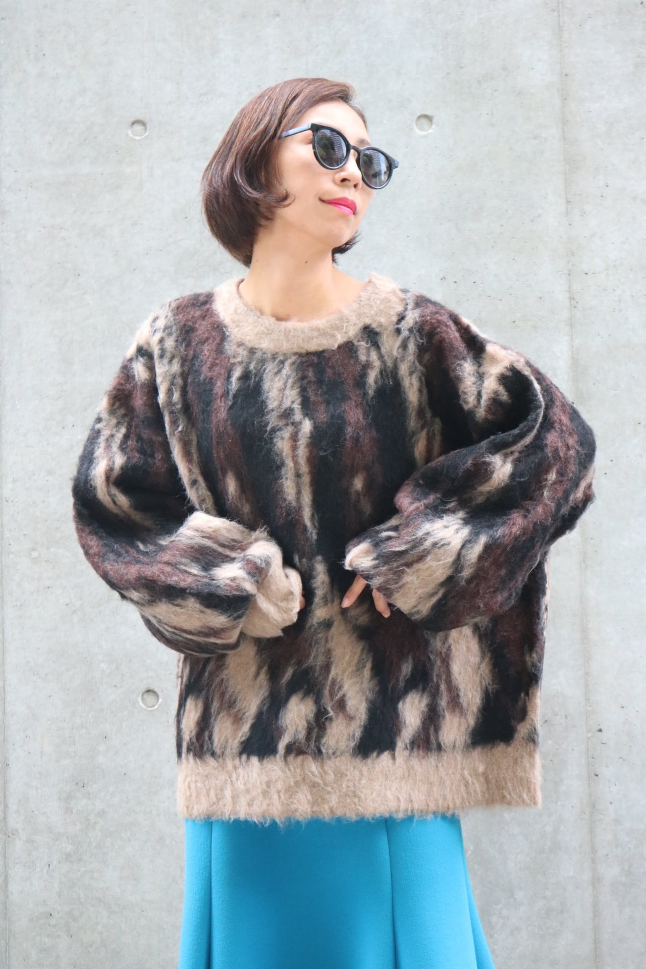 大胆なアソート柄がモードな気分を格上げしてくれ、オーバーサイズでお尻が隠れる丈となっております。