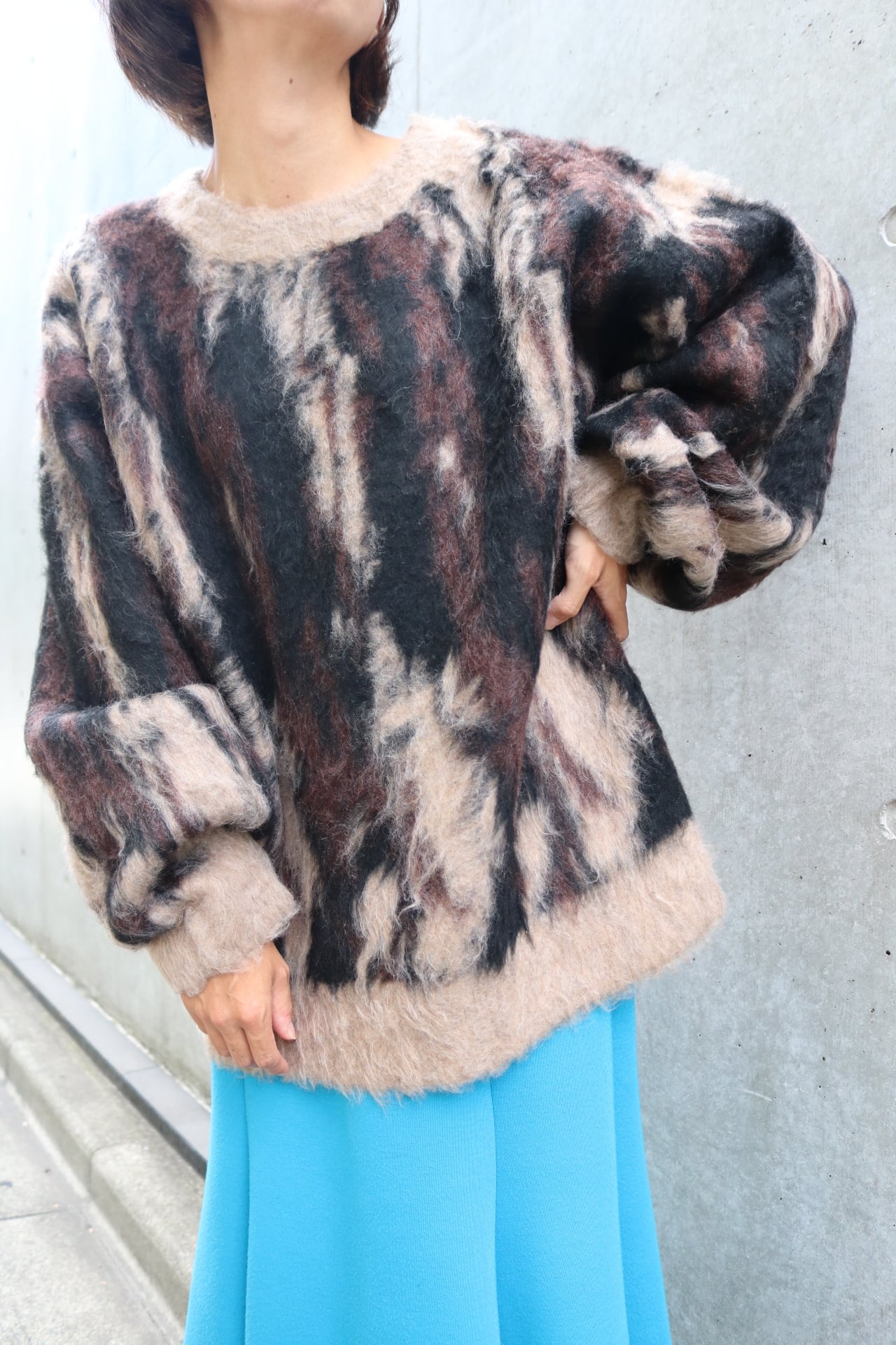 モヘアニットの生地感は肉厚であたたかく大変肌あたりが良い優しい着心地がポイントでございます。