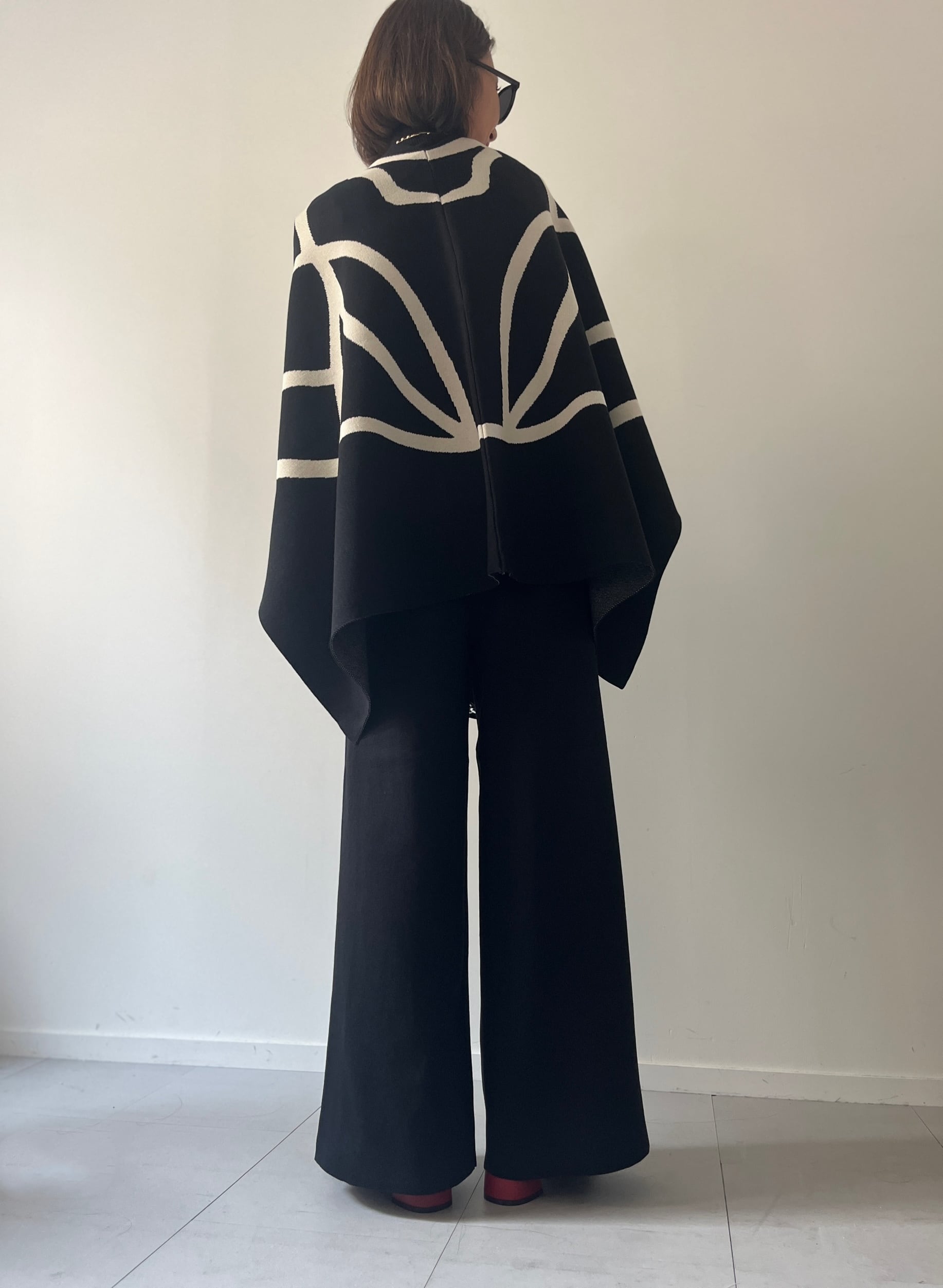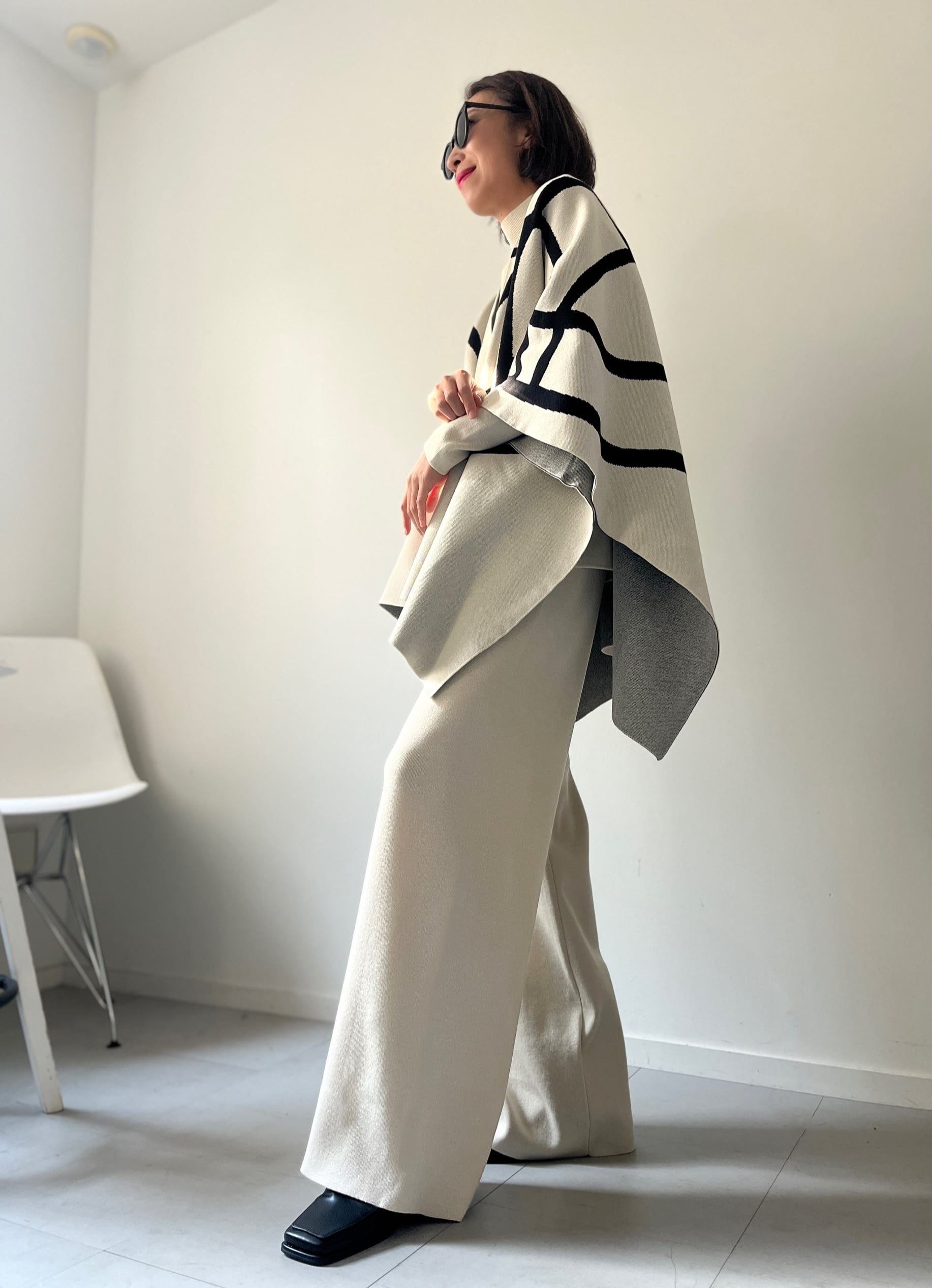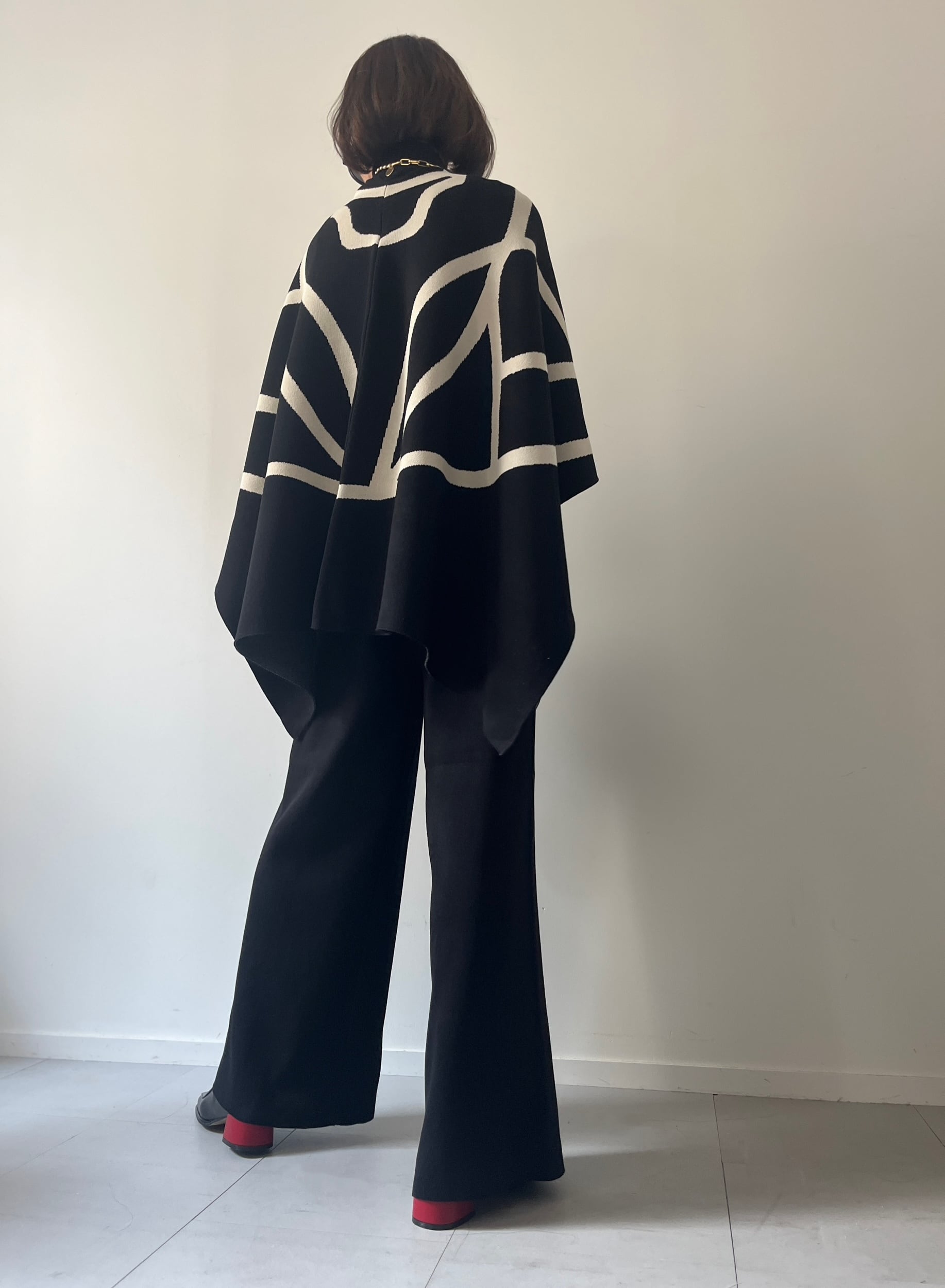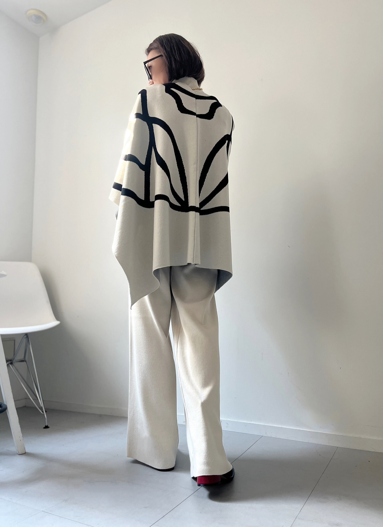 大判なショール付きのニットセットアップが新登場。上半身を綺麗に覆えるサイズ感のニュアンスラインがスタイリッシュな雰囲気を演出致します。